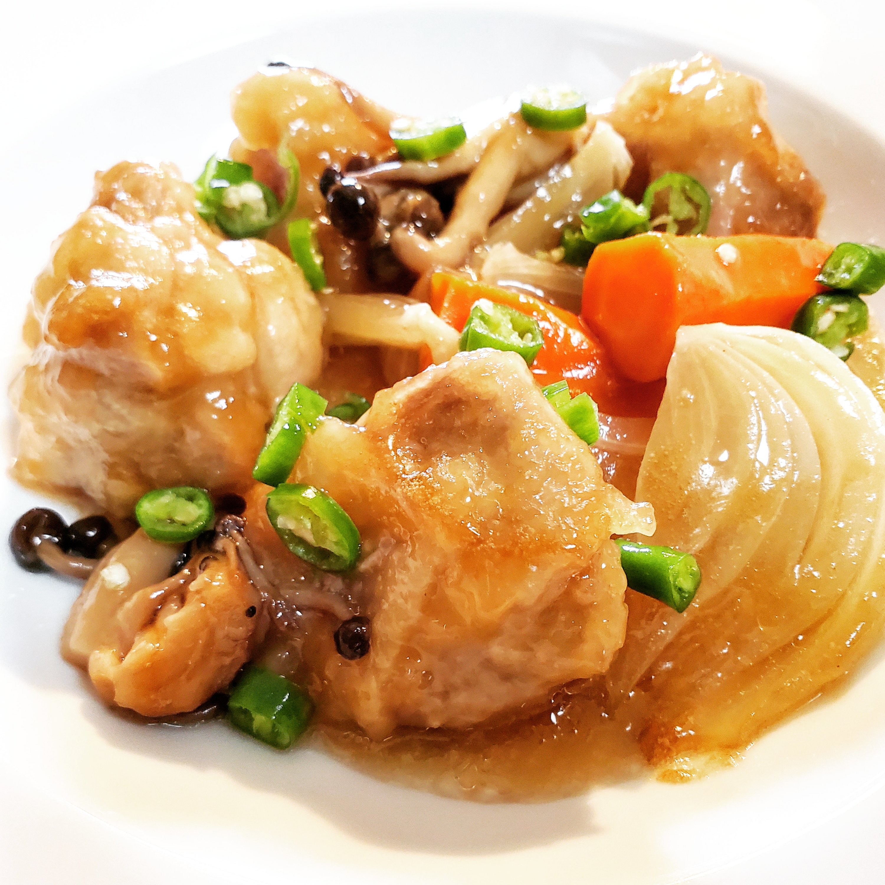 お酢を入れて甘酸っぱく味付けているので、さっぱりとした味わいになりますが、鶏を下揚げしておくことでコクも出るのでボリュームはしっかり。