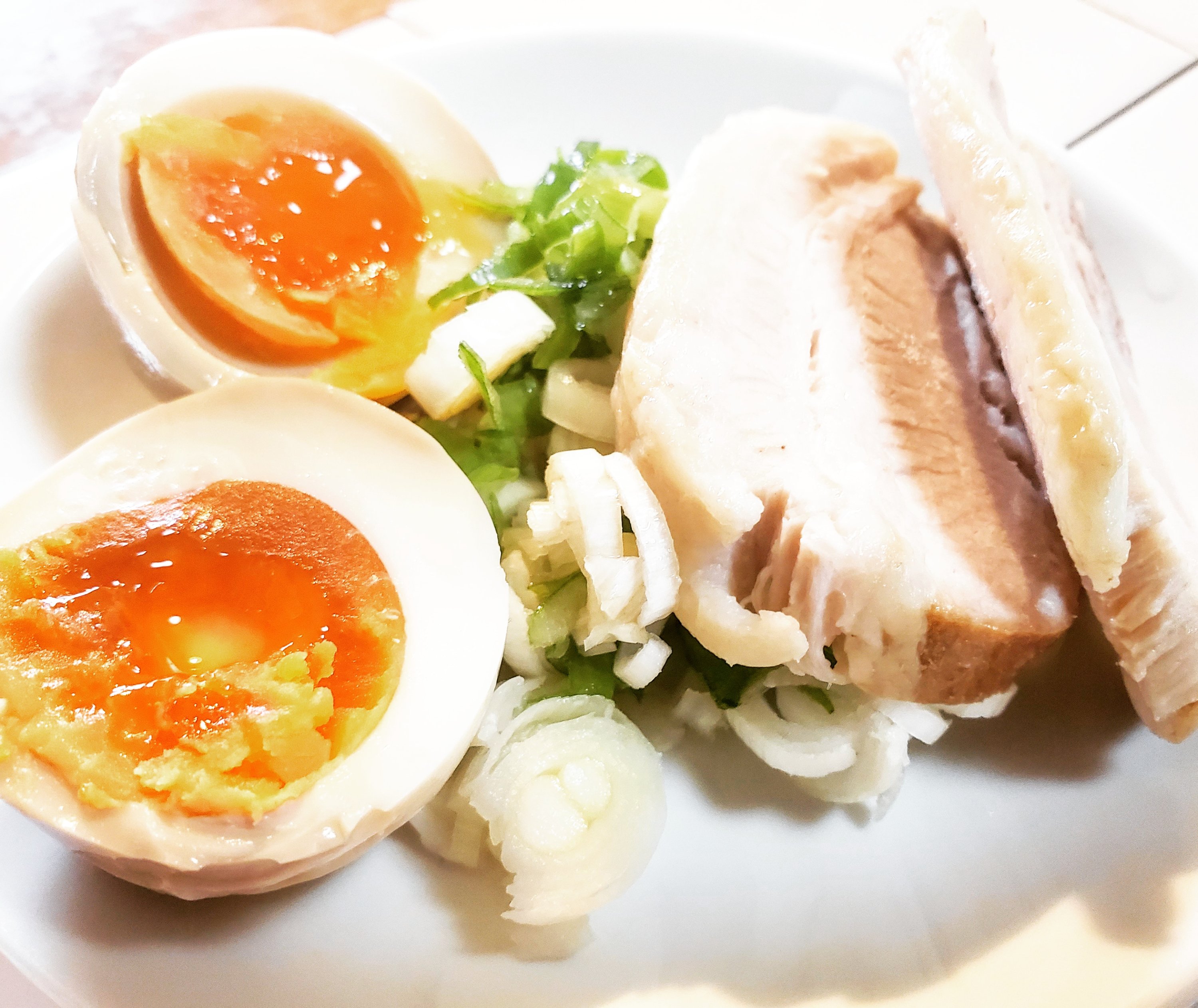 えへへ、いろいろ常備菜があるなかでも、味玉とチャーシューは便利です。作っておいてよかった!!