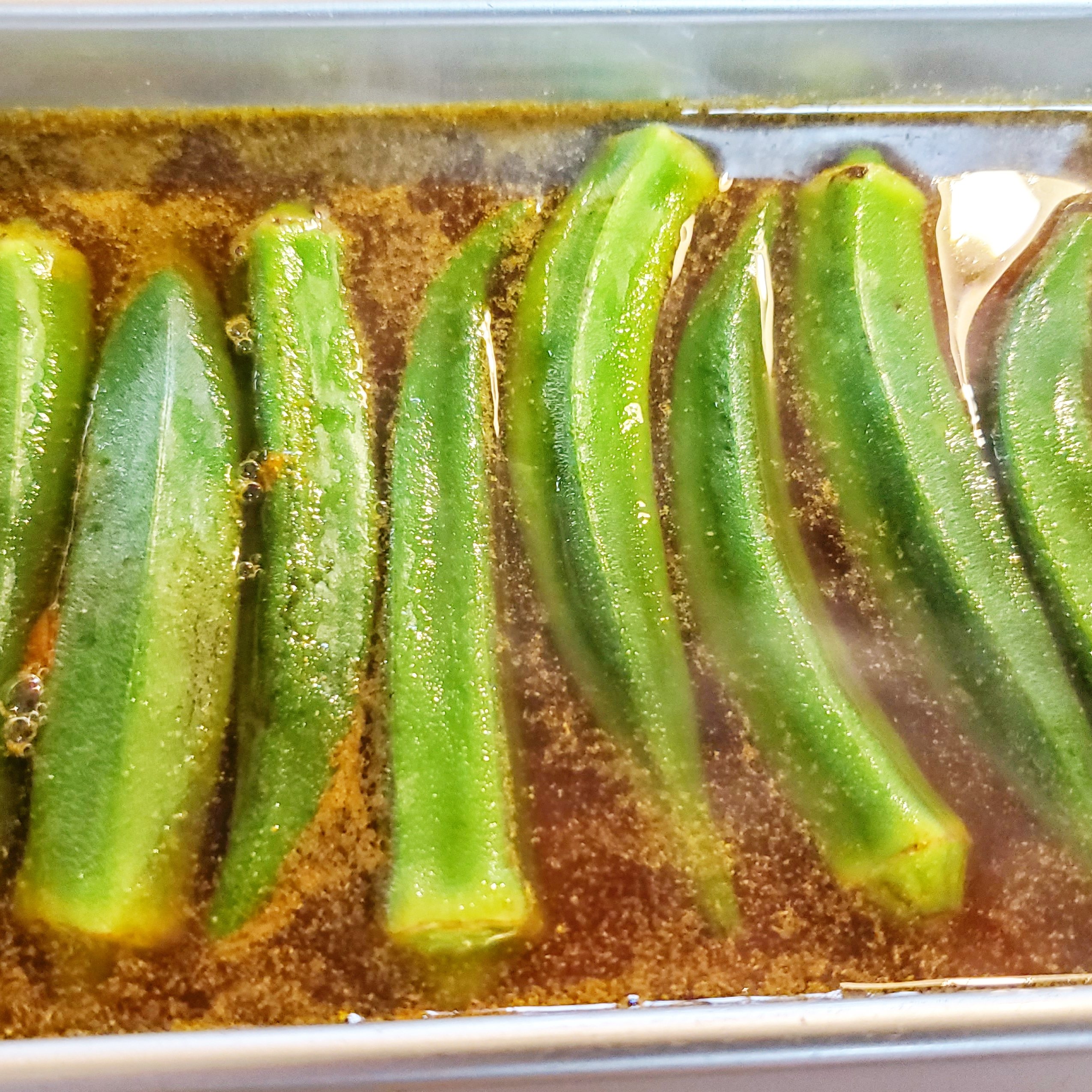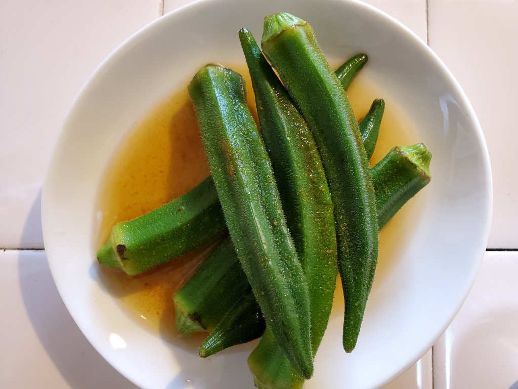 オクラを茹でて漬けるだけなのですが、ポイントは漬け汁です。