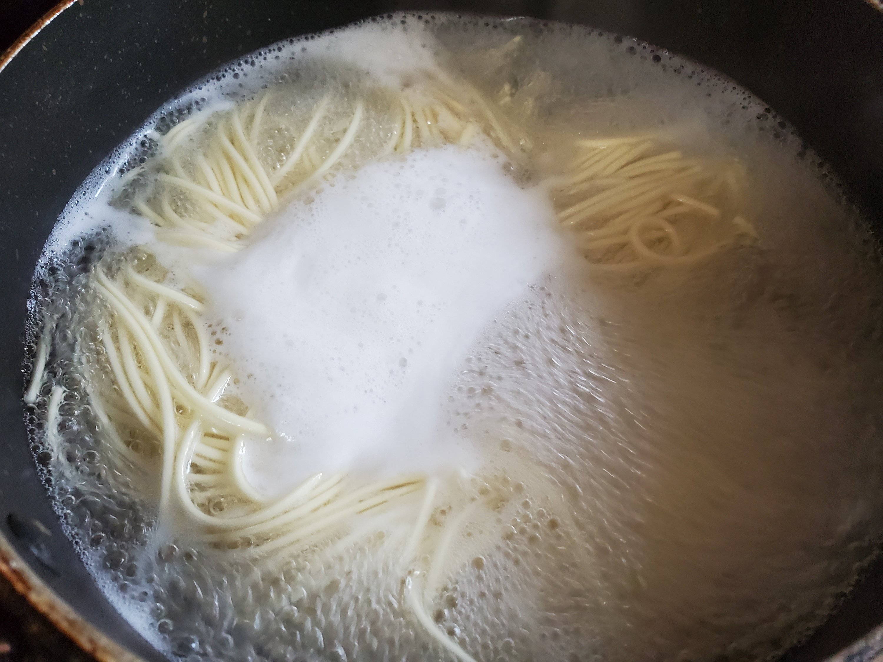 3分茹でて、冷水で洗い、よく水気を切ります。