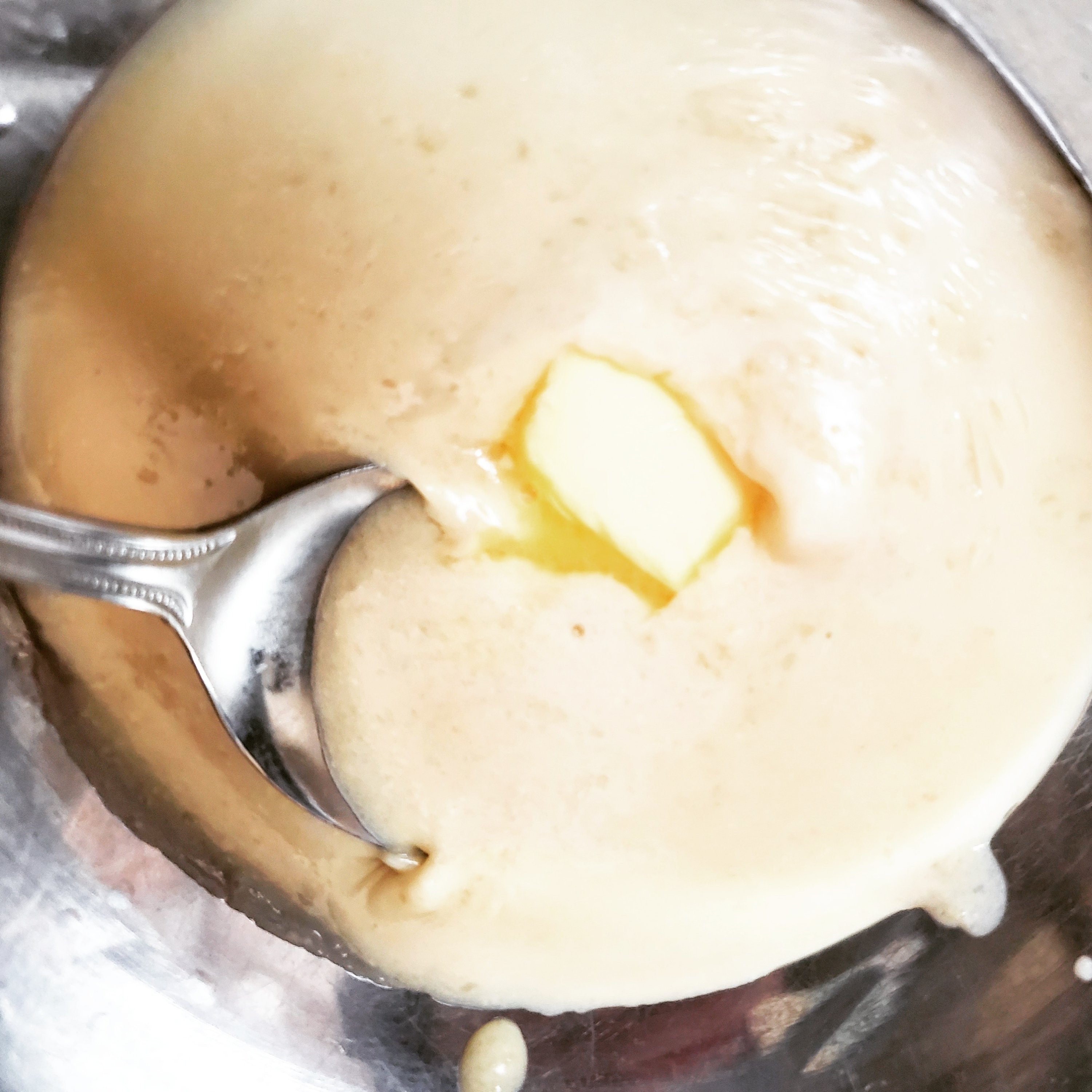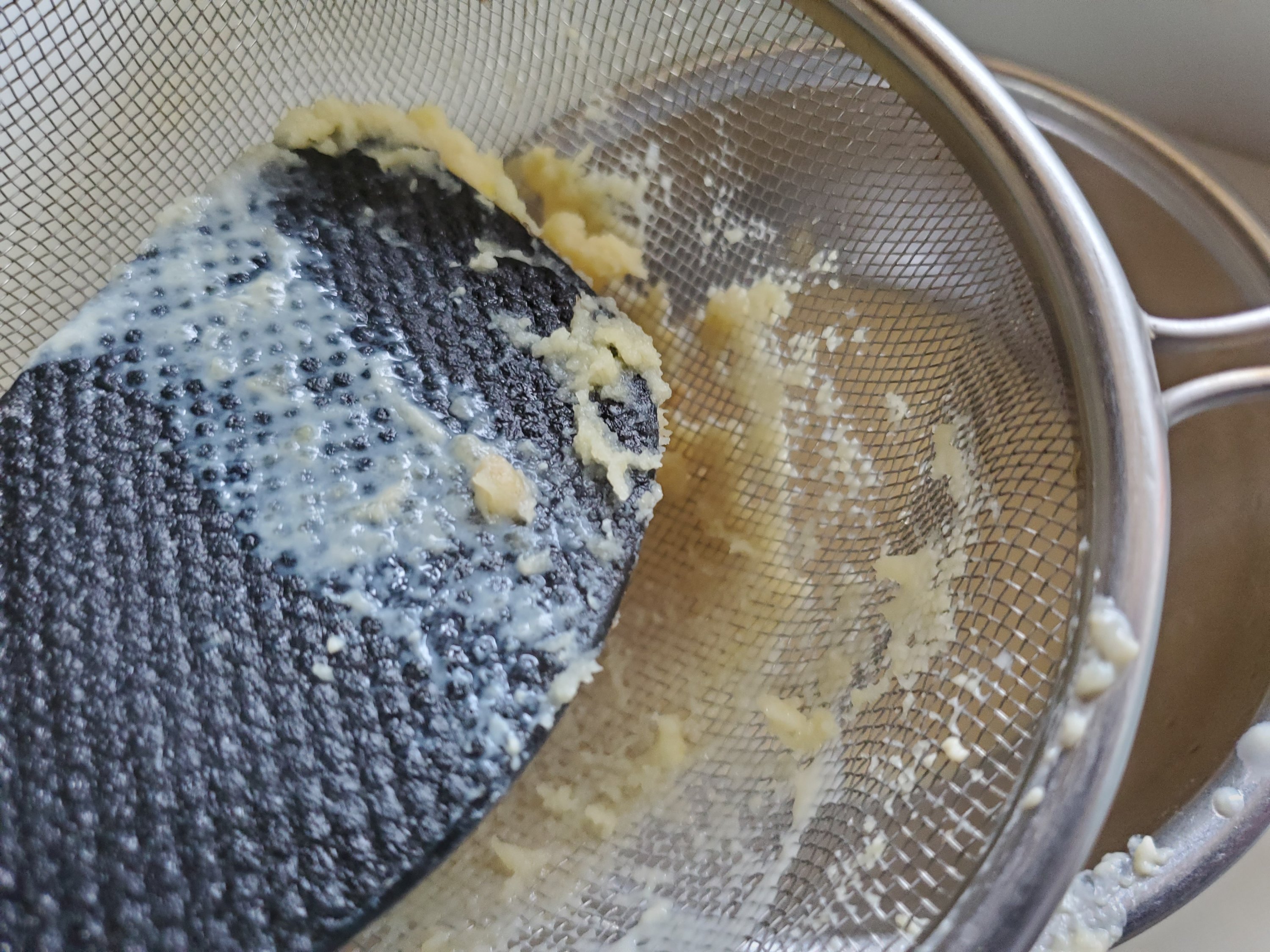 ダマができると気になりますが、今回はこのあと濾して滑らかにしますので、なるべくだまが出来ないようにまぜる…くらいの気持ちで大丈夫です。