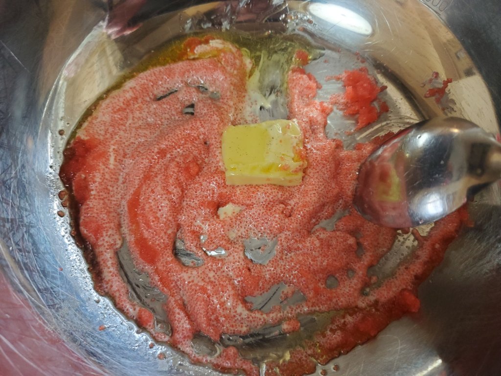 バターはこのあとパスタの熱で溶かすので、無理に崩したりしないで大丈夫です。