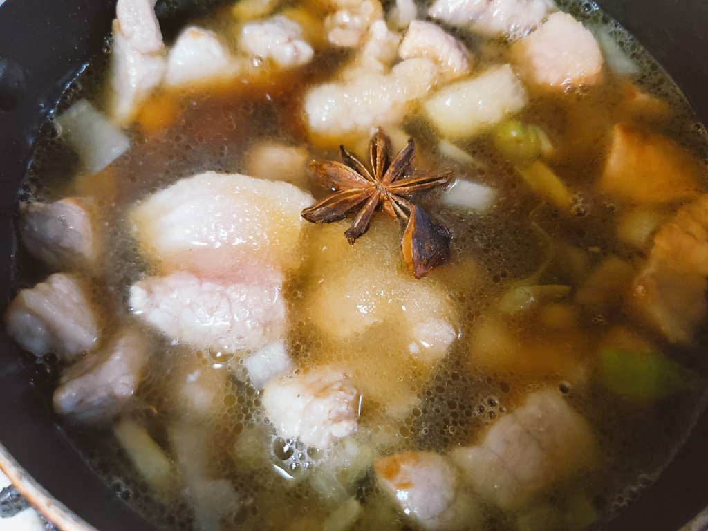 甘辛く煮た豚バラの脂のとろとろした食感と、特徴的な八角の香りがなんともいえないおいしさです🍚