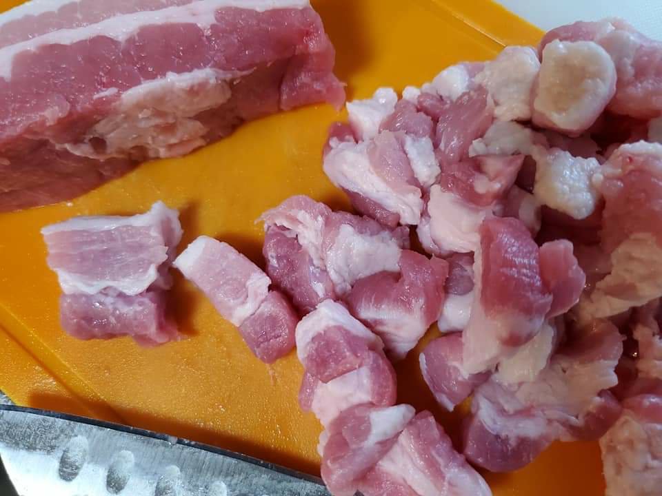 ブロックの豚バラを細かく刻んで使うのが好みです。