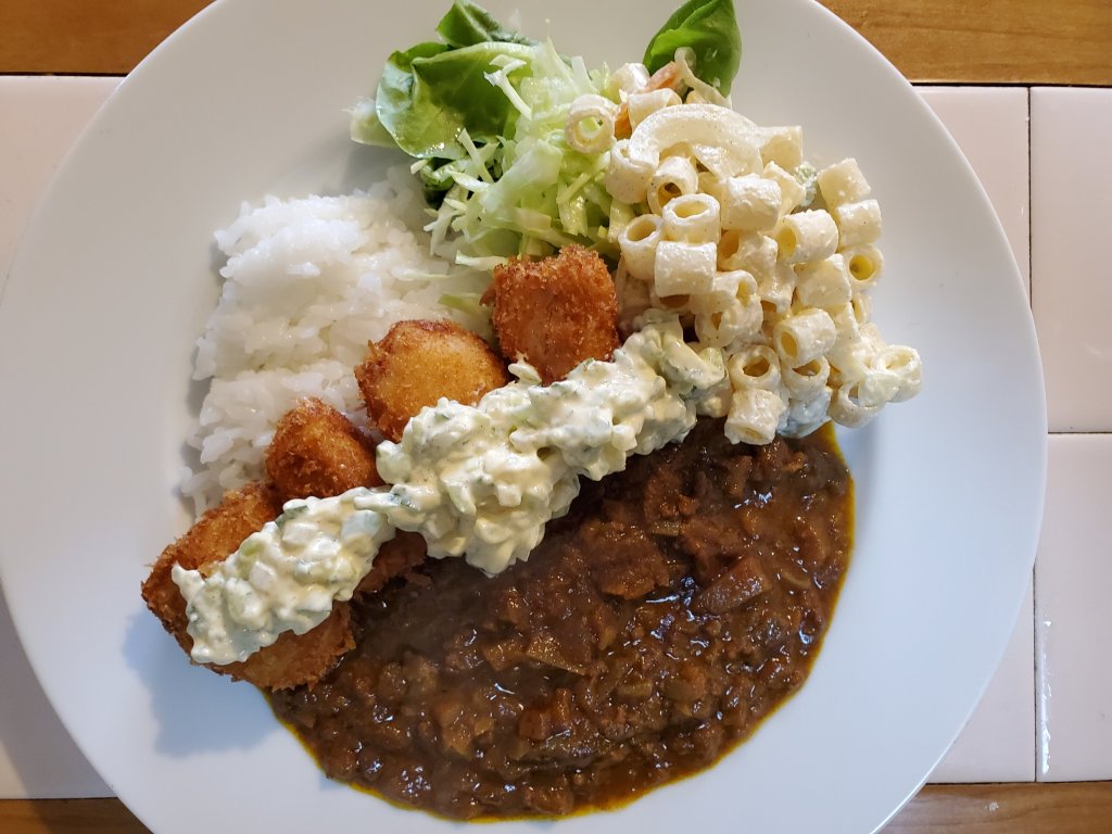 マカロニサラダと野菜も添えて、洋食屋さん風ワンプレートでいただきます🍛