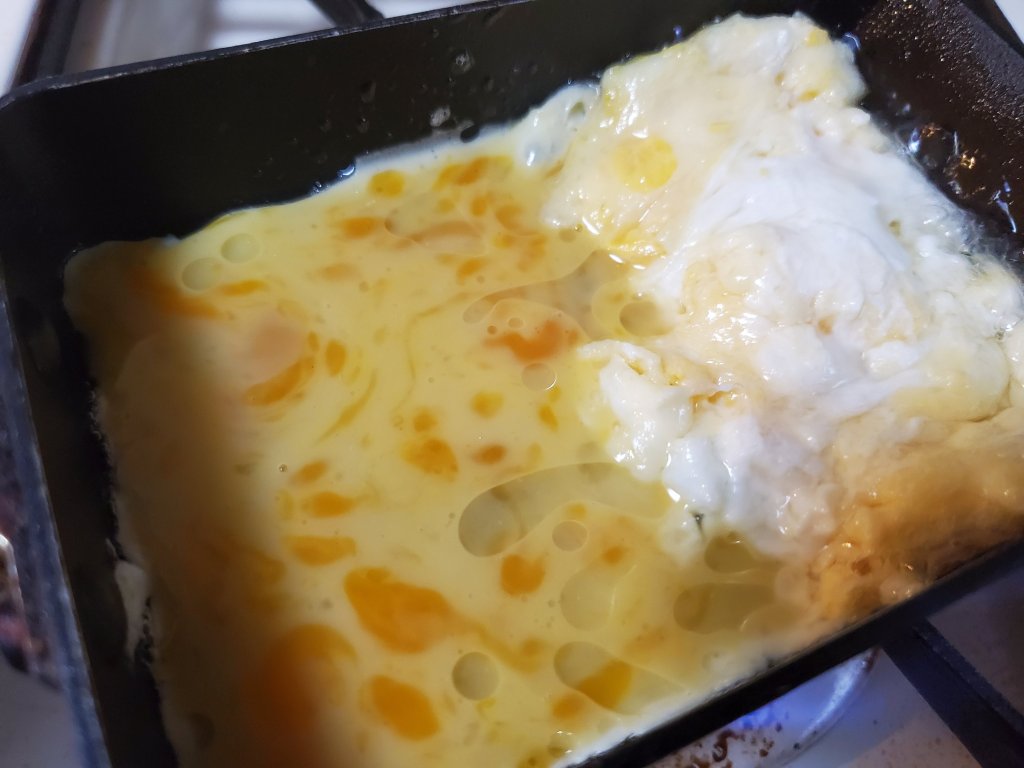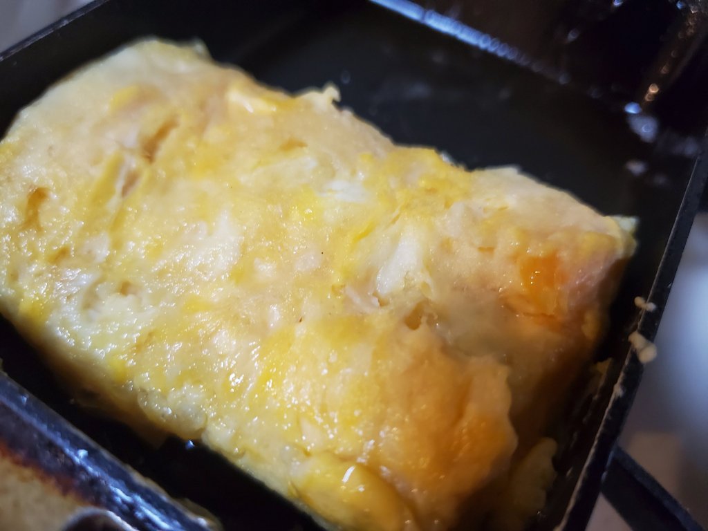 だし汁の水分で卵液がゆるくなると巻きにくくなります。