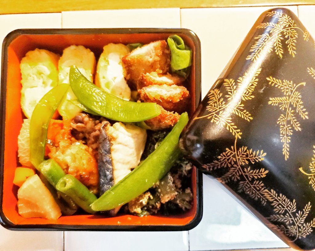 そんなにぎやかなご飯を食べたいなぁ…と思って、おつまみをいろいろ盛り込んだお重を作ってみました。