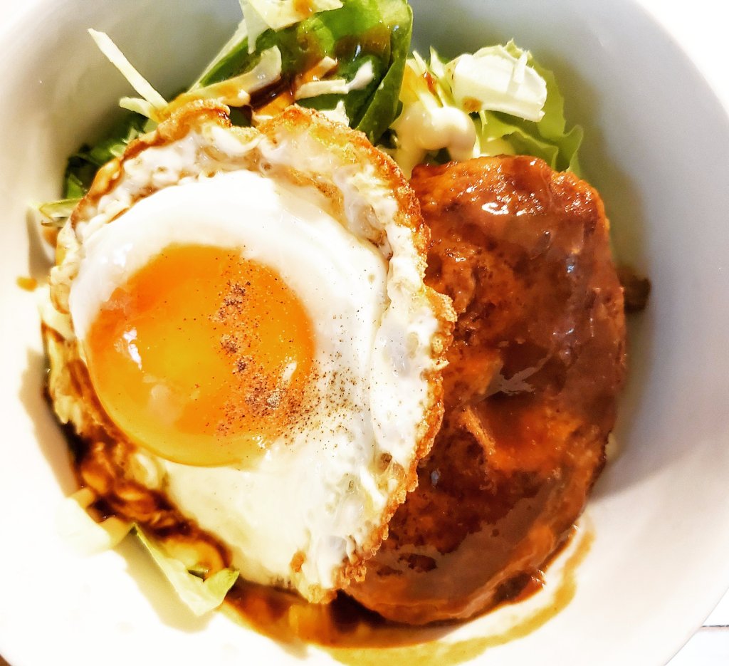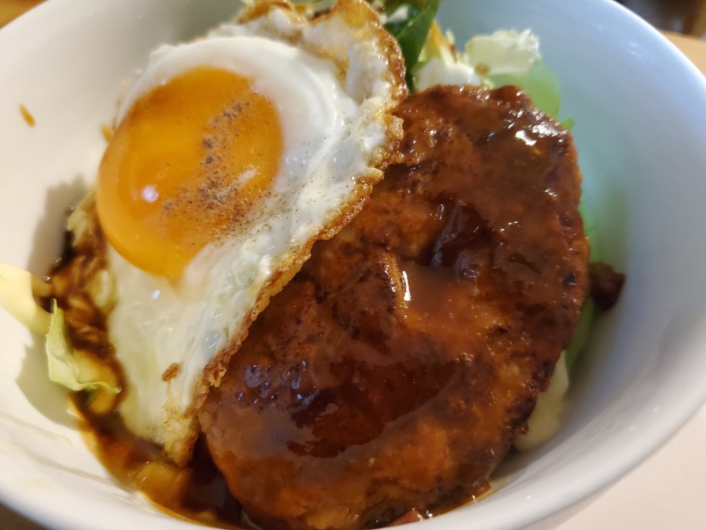 ハンバーグのアレンジメニューの中でも、一皿で食べられる丼スタイルは、時間のないランチにもいいですよね。