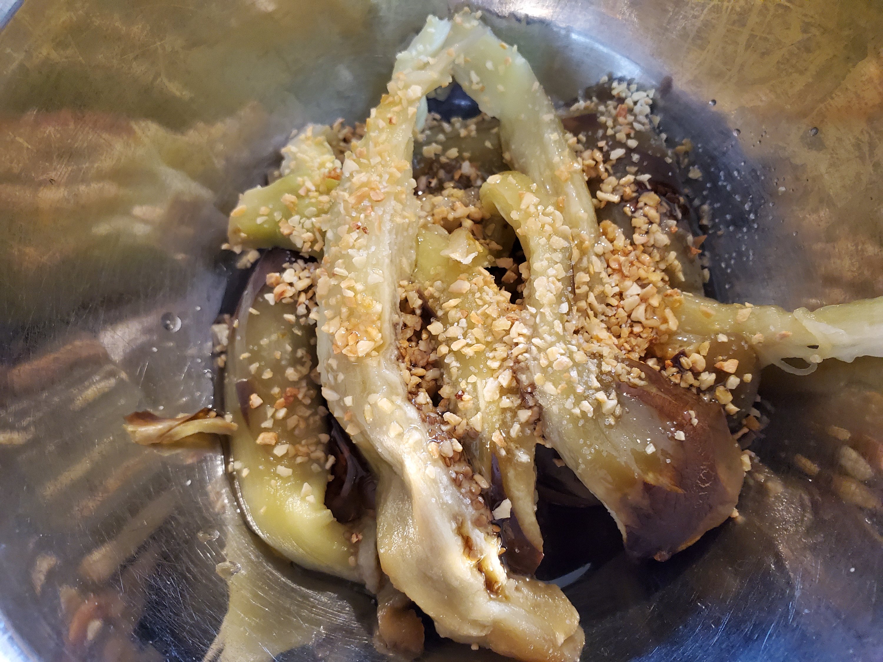 なすは手で裂いてボウルに入れたら、