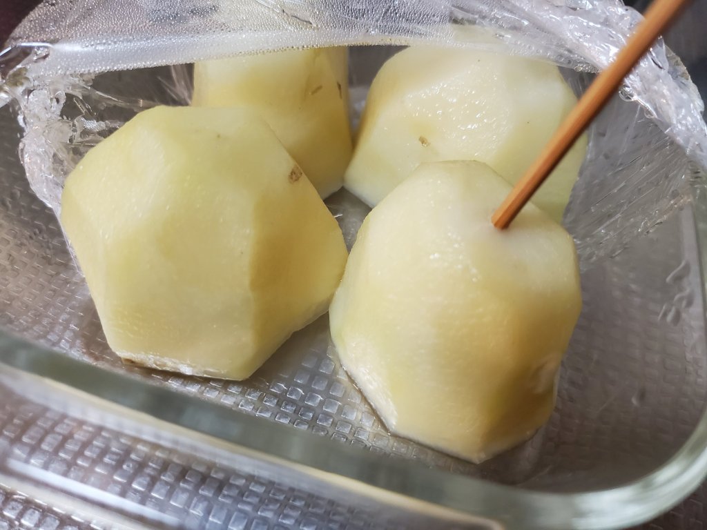 竹串がすっと通るようになるまで、あらかじめ加熱しておくことで、あとは煮込んで味をしみこませるだけでOKです🥔