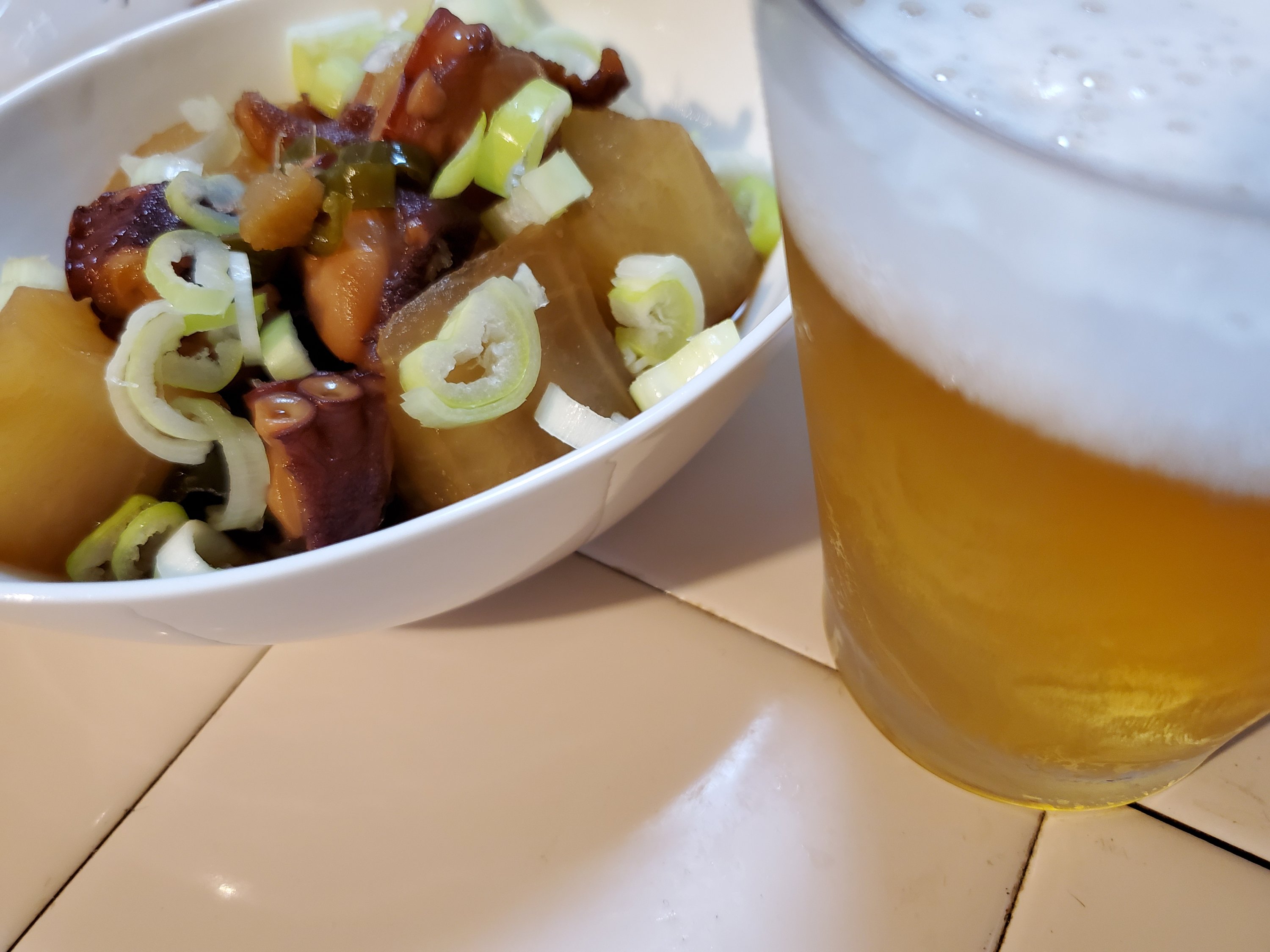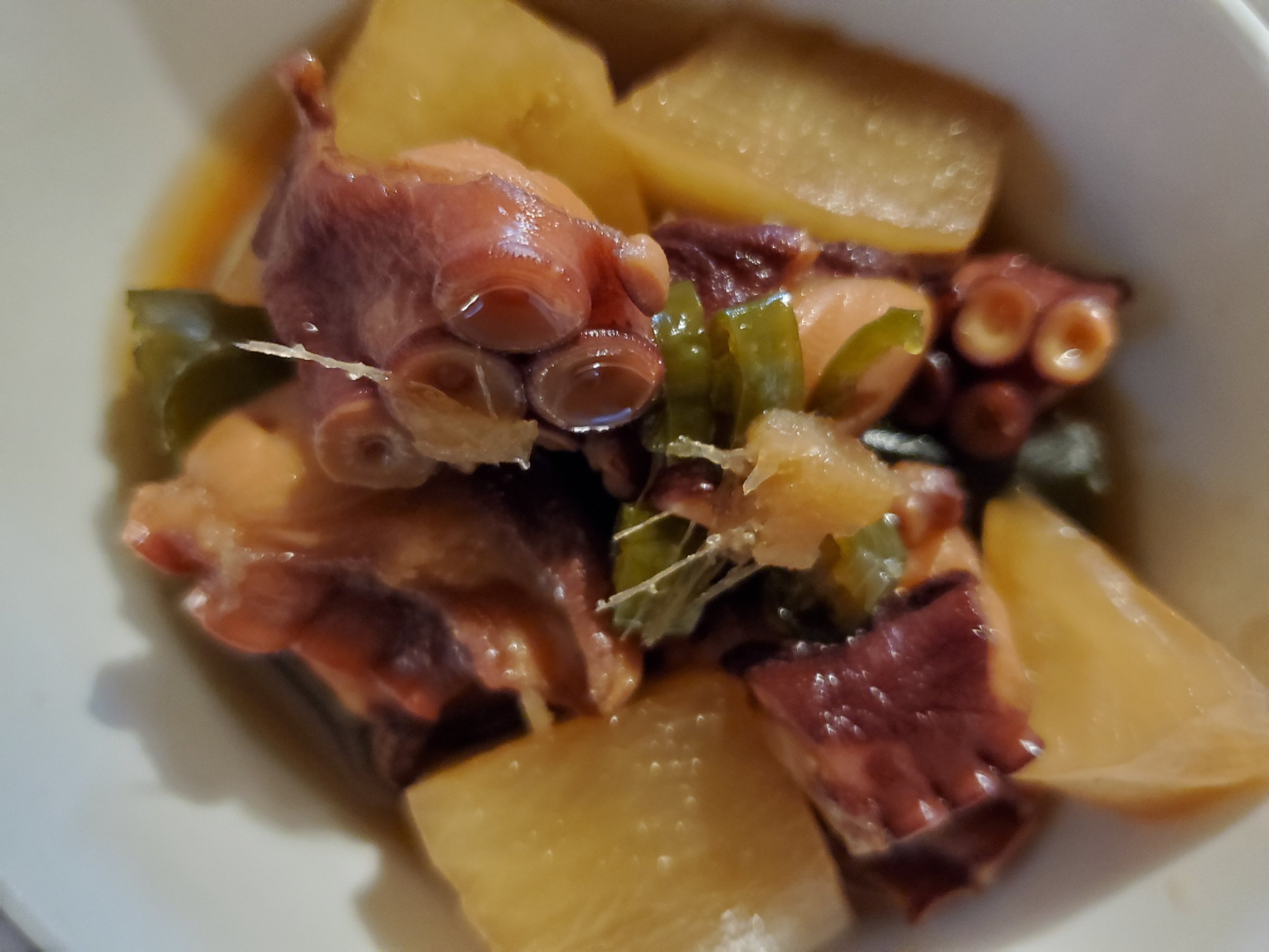 タコがやわらかく上手に炊けるコツは大根おろしの絞り汁を入れて炊くこと。