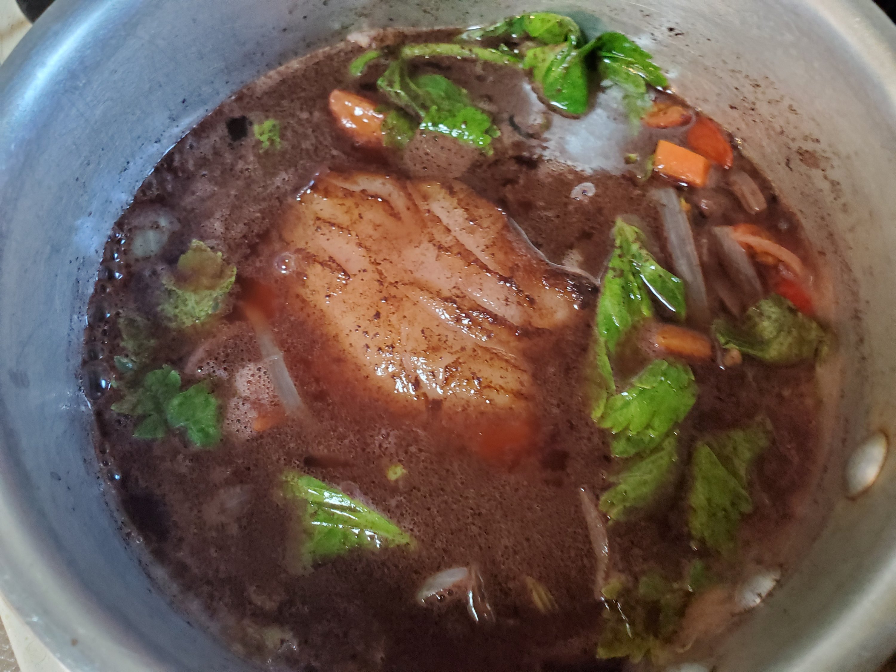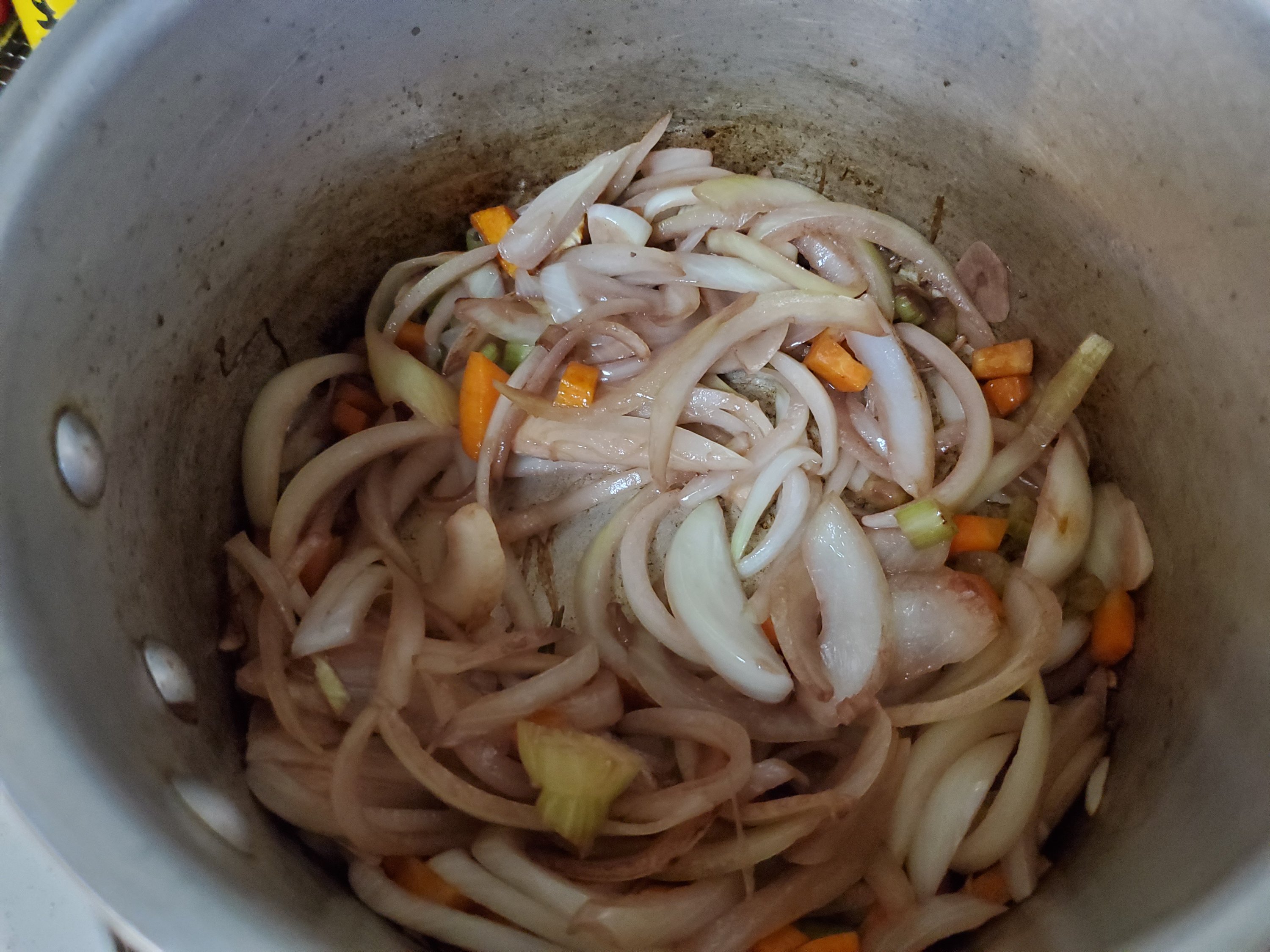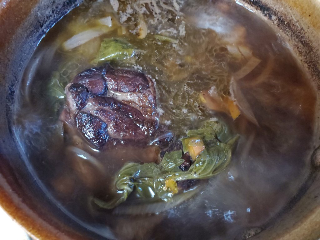 水分が減ってきたらつぎ足しつつ、じっくりと煮込んでいきます。