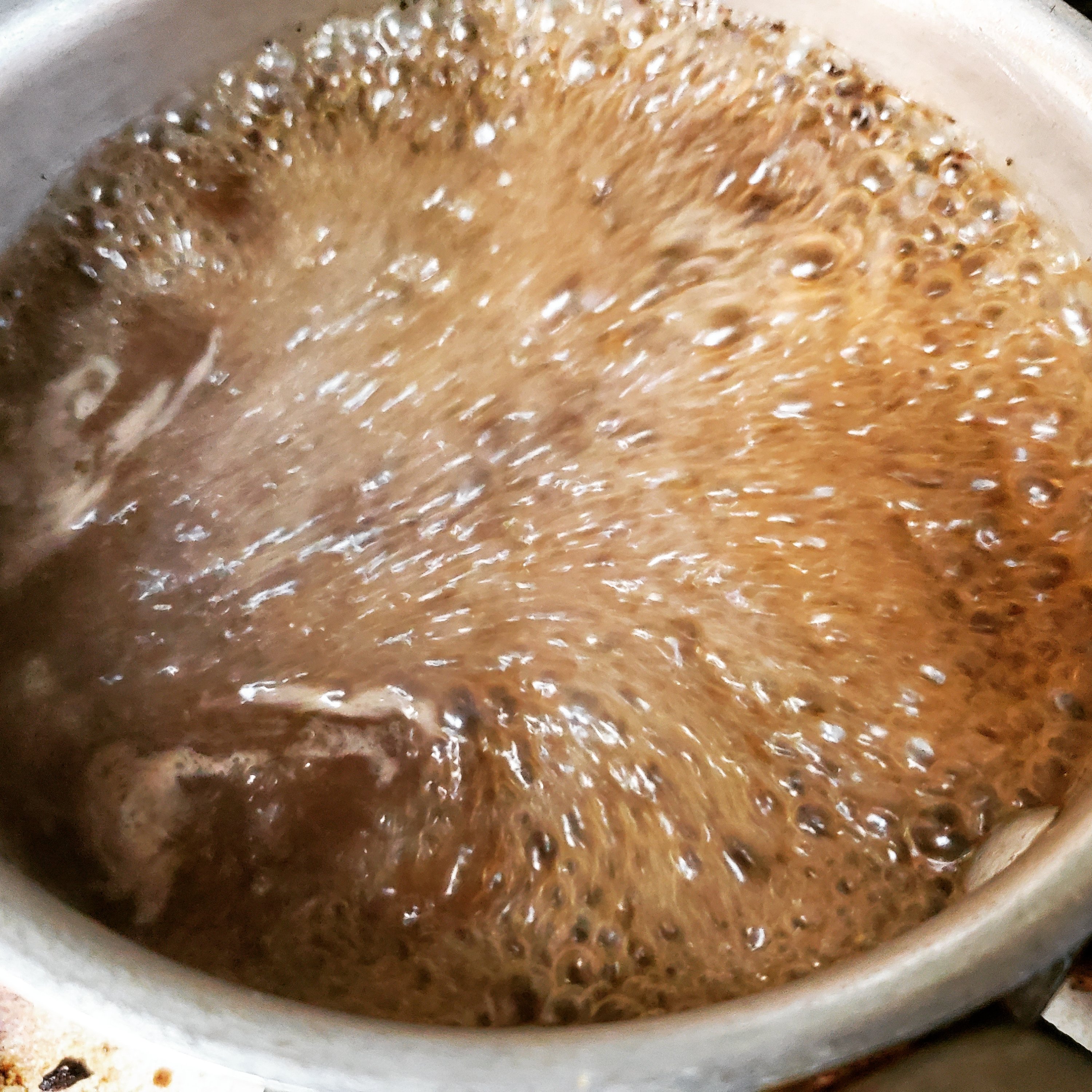 強火で湧き立たせたら、中弱火に落としてことことじっくり。