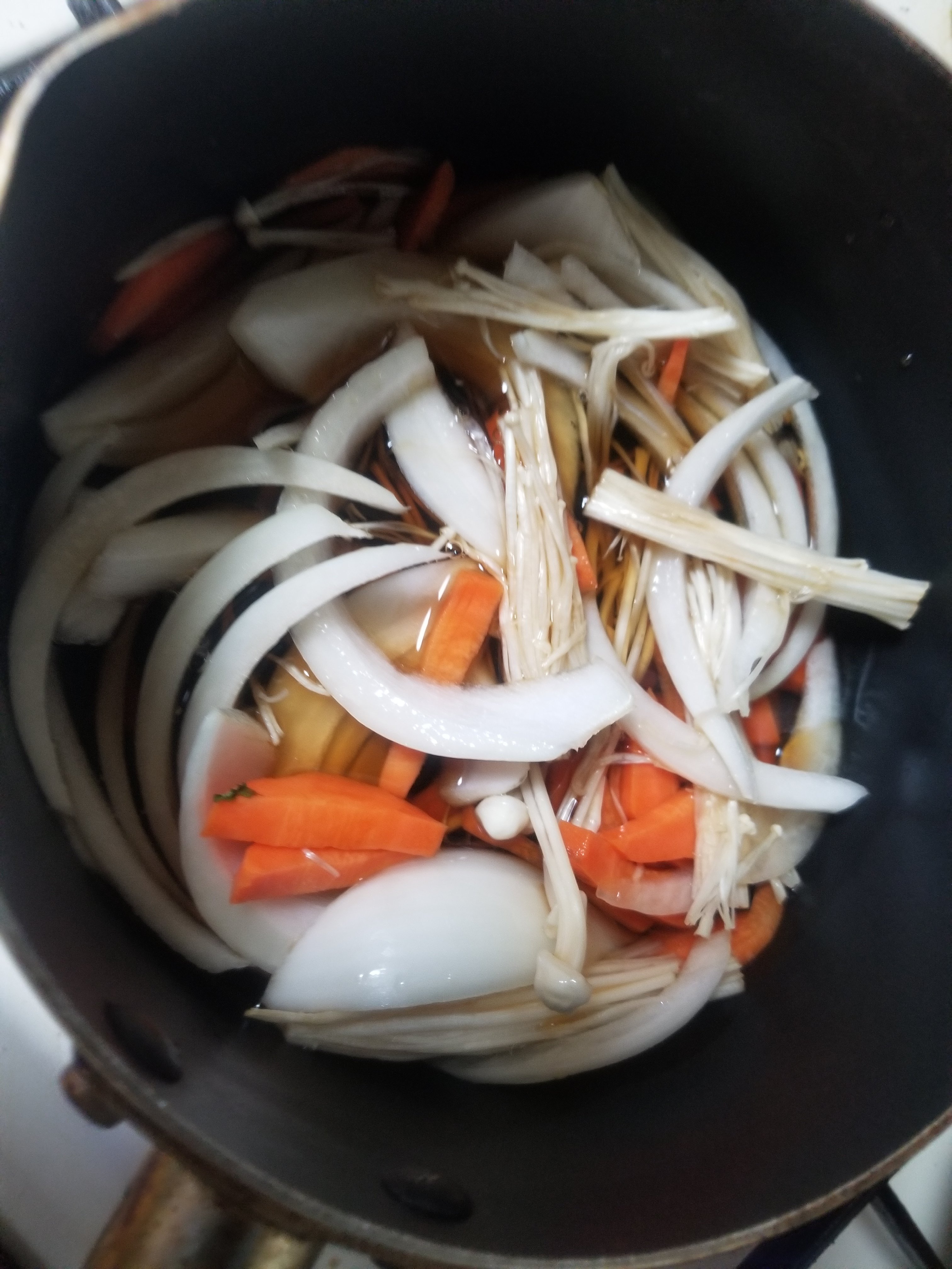 めんつゆで煮ます。