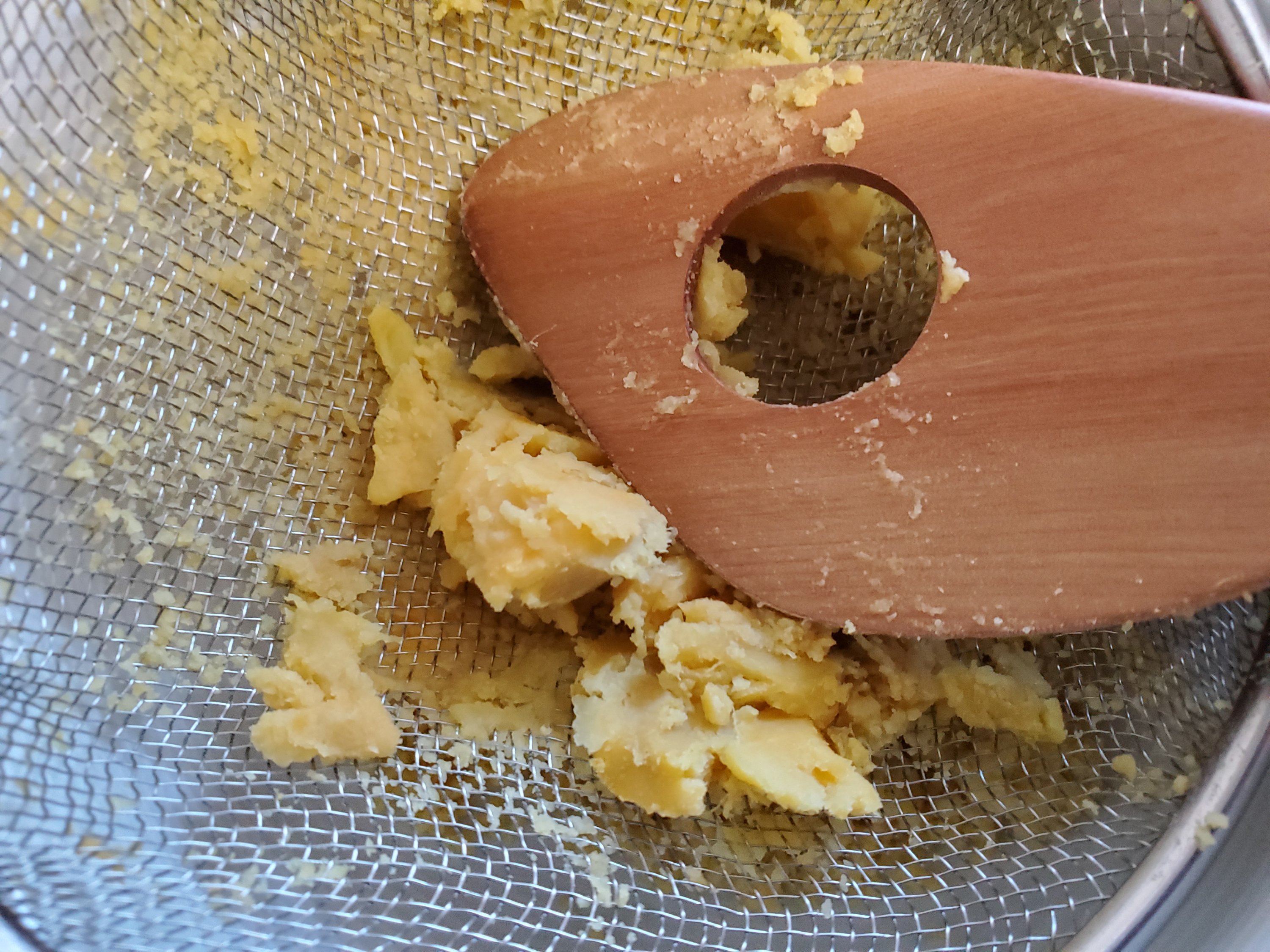 ここで裏ごしして繊維を取り除くことで、できあがりがなめらかになります。