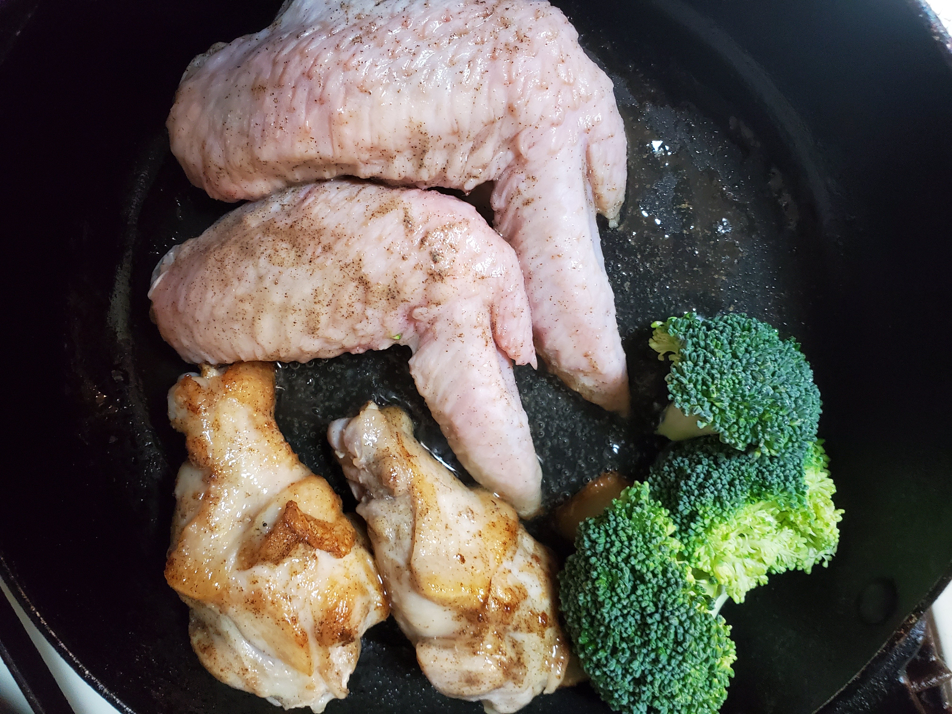 手羽先とブロッコリを投入。