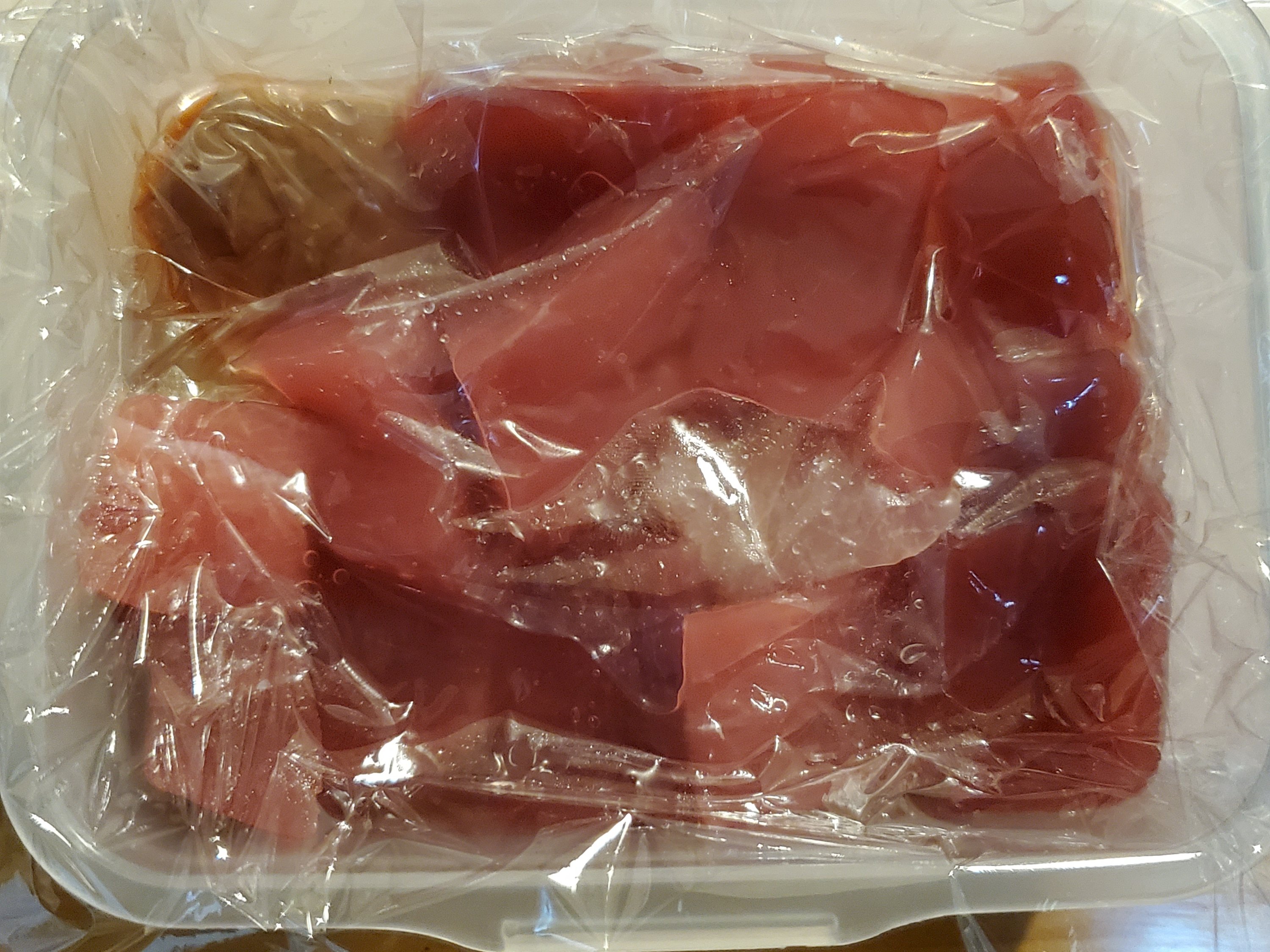 このまま蓋をして冷蔵庫でひと晩漬け込みます。