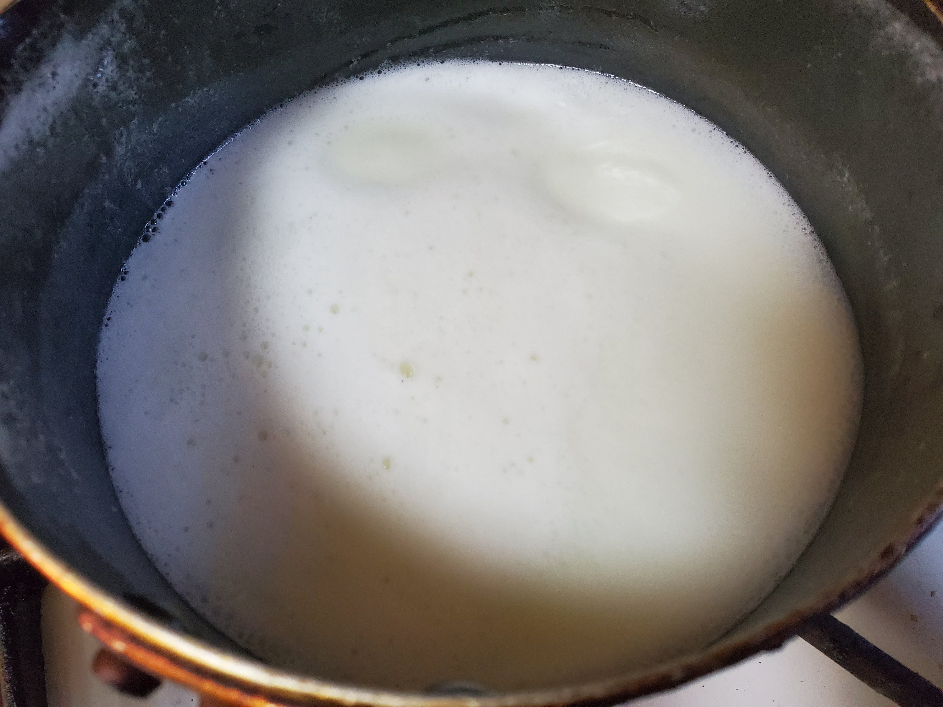 牛乳は加熱するとふきこぼれやすいので、沸騰してきたら火を止めて少し冷ましてからまた火にかけるのを繰り返して、砂糖をよく溶かしつつ、とろみがつくまで煮詰めます。