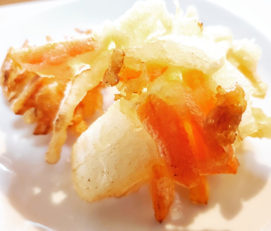 かき揚げですから、色々と具材をあわせるのも楽しいですよね😋