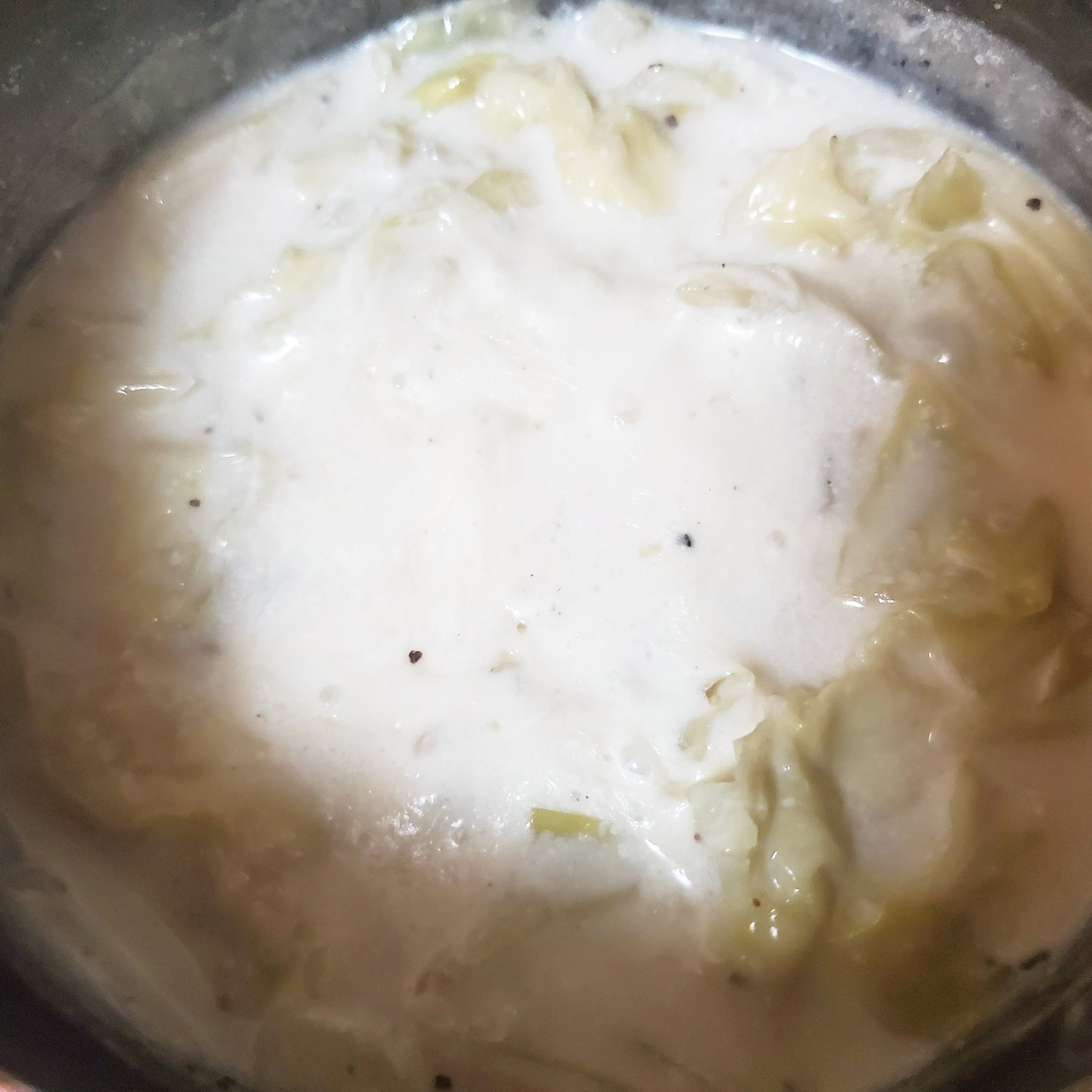 キャベツの甘味を活かして、キャベツのみで作るクリーム煮は、小鉢にもぴったり。