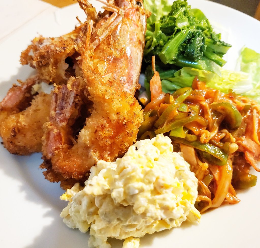 かりっと揚がった衣にプリプリの身が美味しいエビフライができました😋
