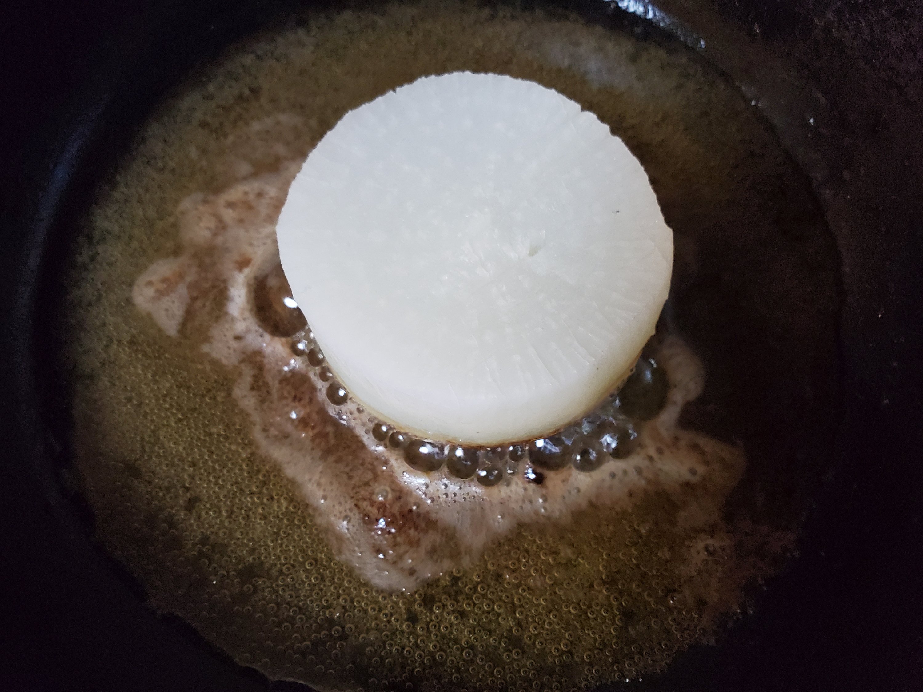 続いて大根を焼いたフライパンでソースを作っていきます。