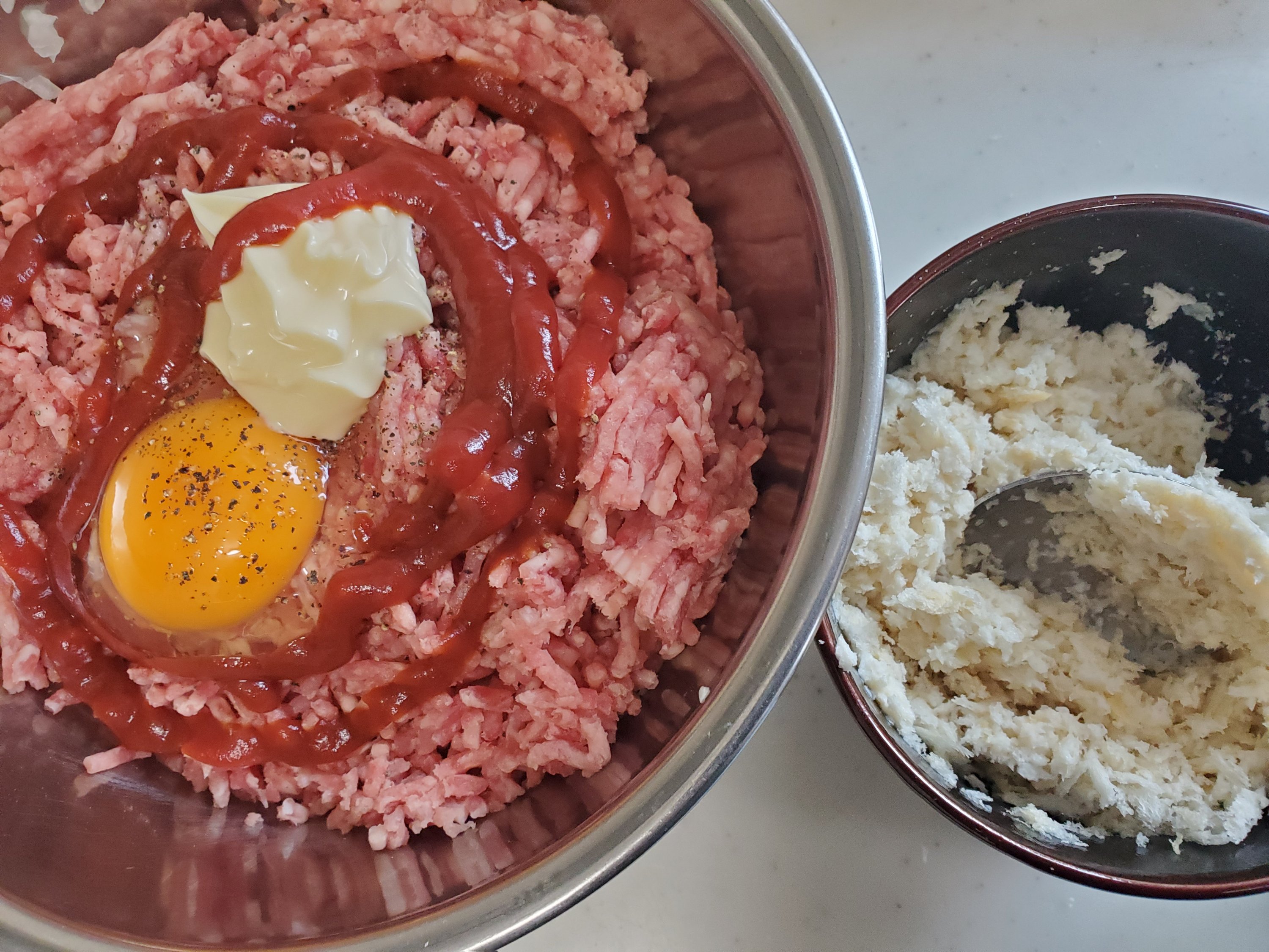 そのものはクラシックなポワレにするのですが、組み合わせをいろいろ考えていて、以前にも作ったことのあるハンバーグと合わせることにしました。