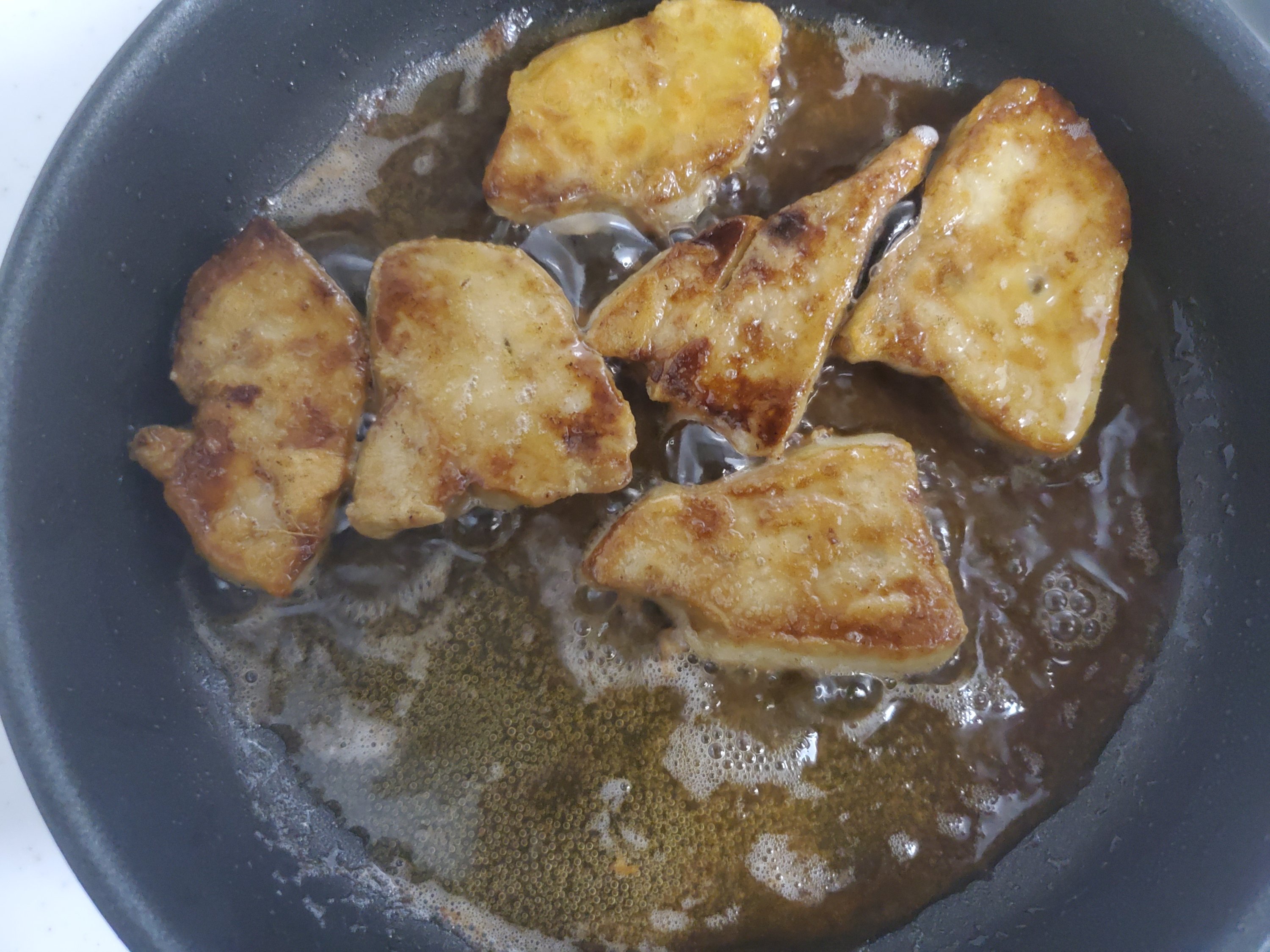 煮汁を半分くらいまで煮詰めて、付属のたれと黒胡椒を加えて、仕上げにバターを溶かします。