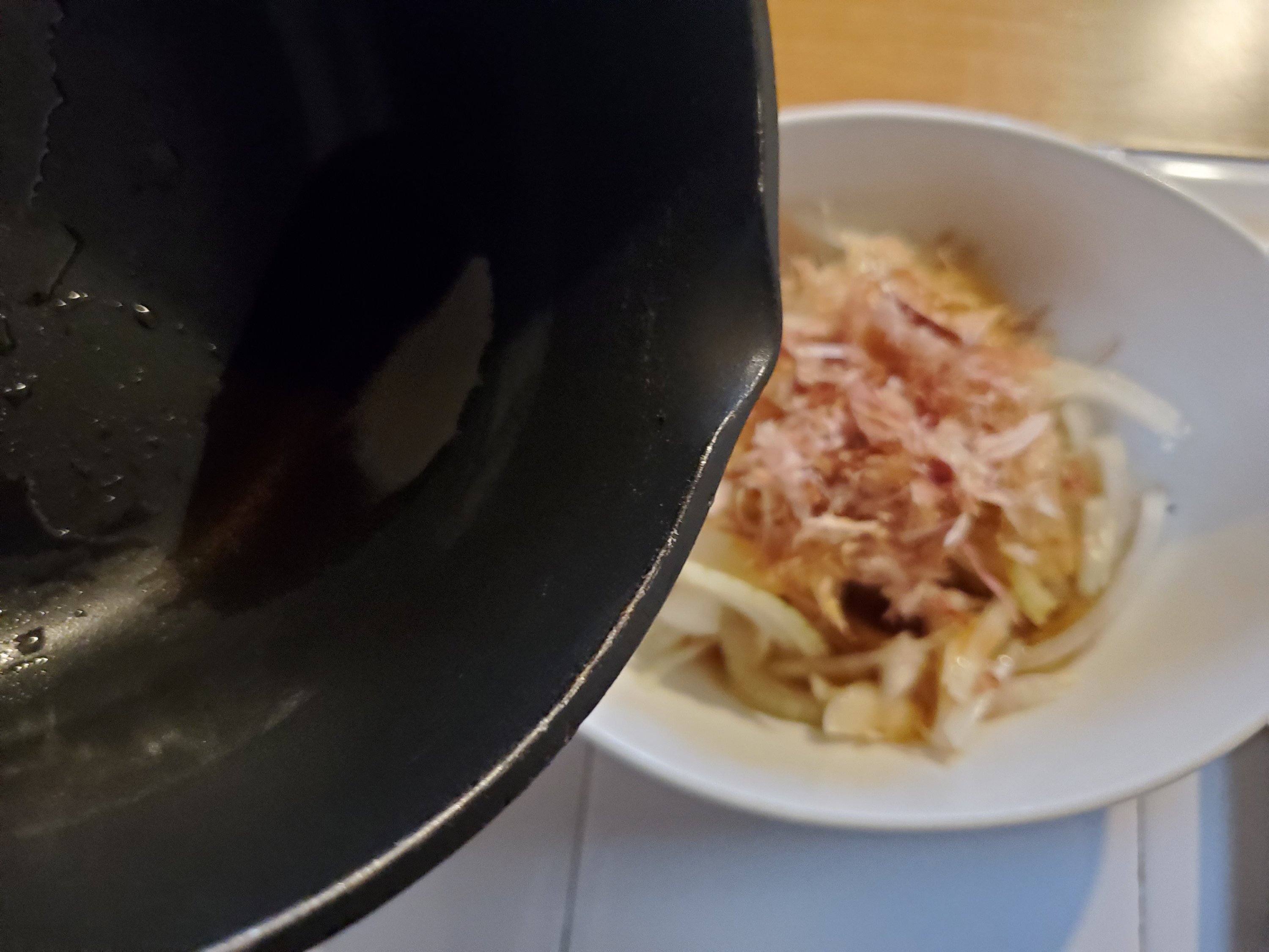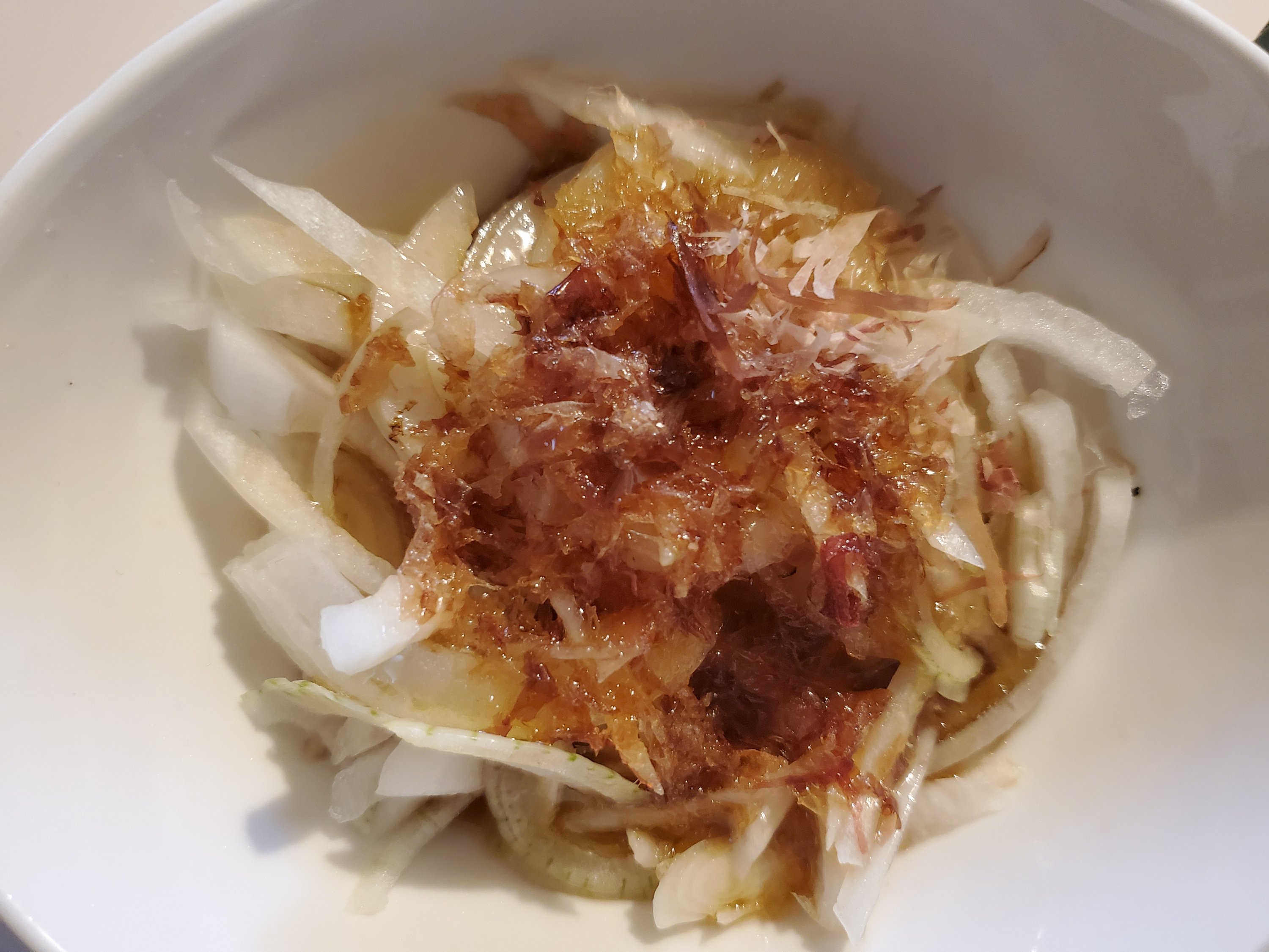 熱したごま油でかつおぶしが揚げたような食感になるのがいいアクセント。
