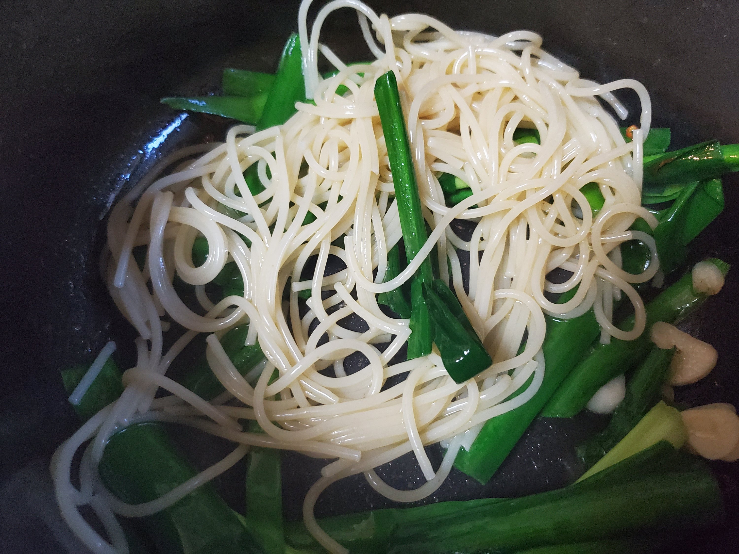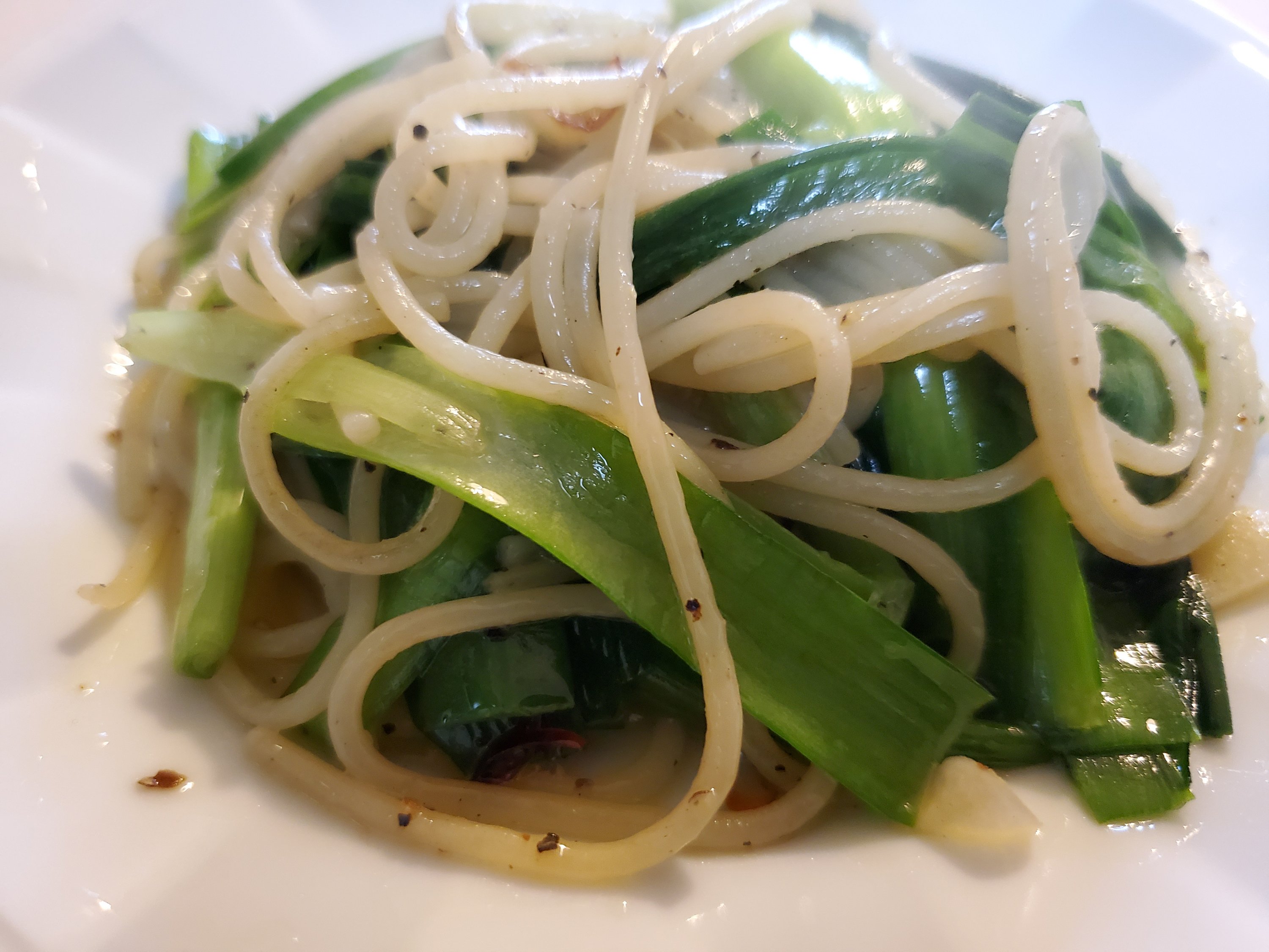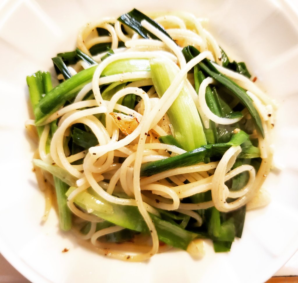 しゃきしゃきしたにらの食感が美味しいシンプルパスタの出来上がりです🙌