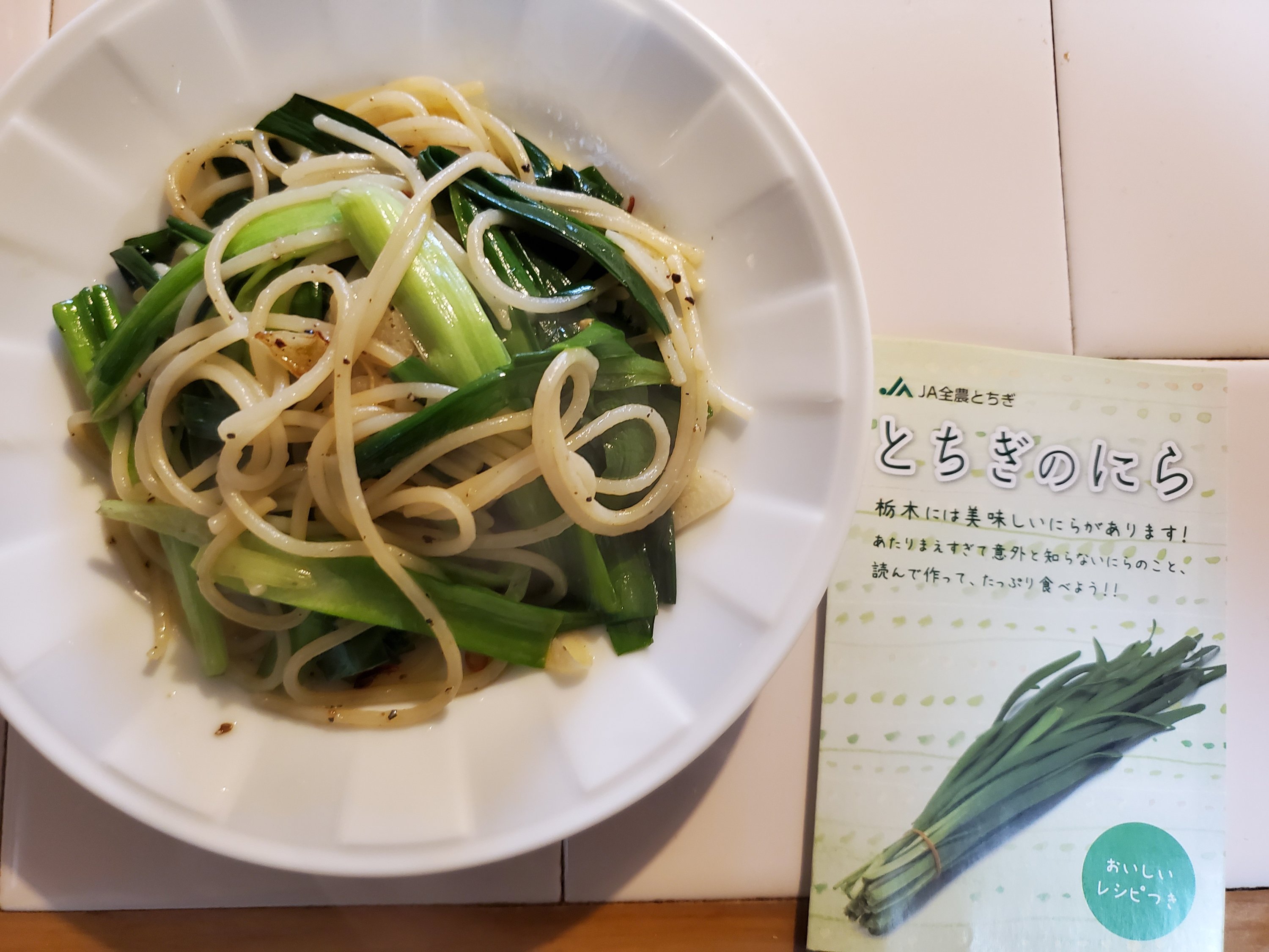 今回はモニタープレゼントの栃木県産にらでペペローンチーノ風のパスタを作ってみました🍝