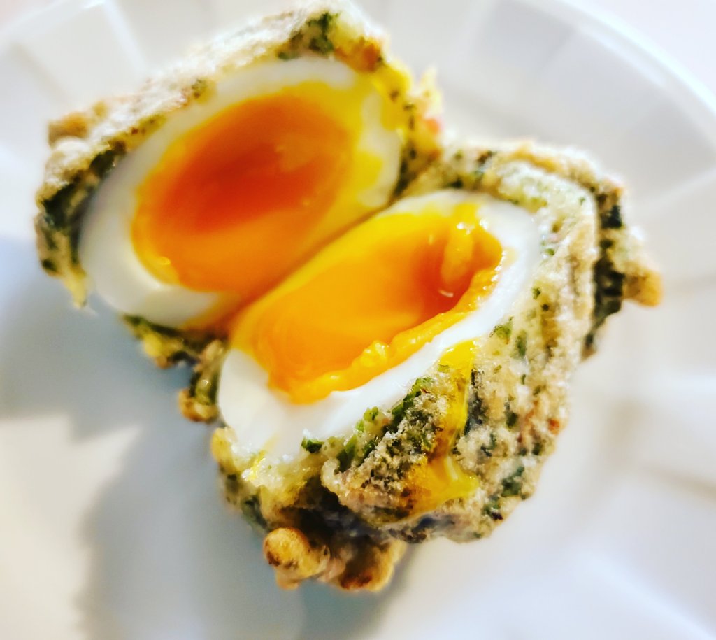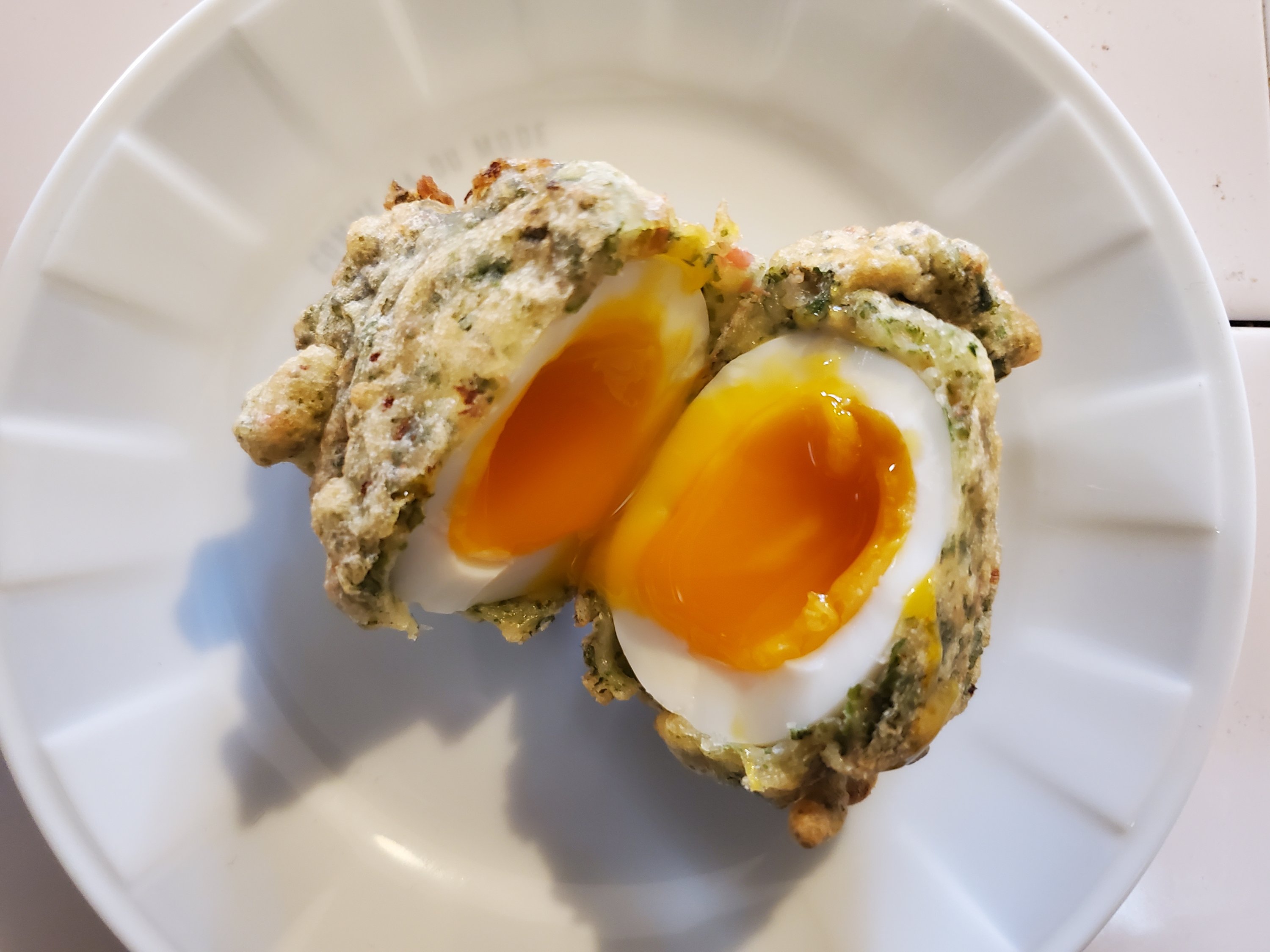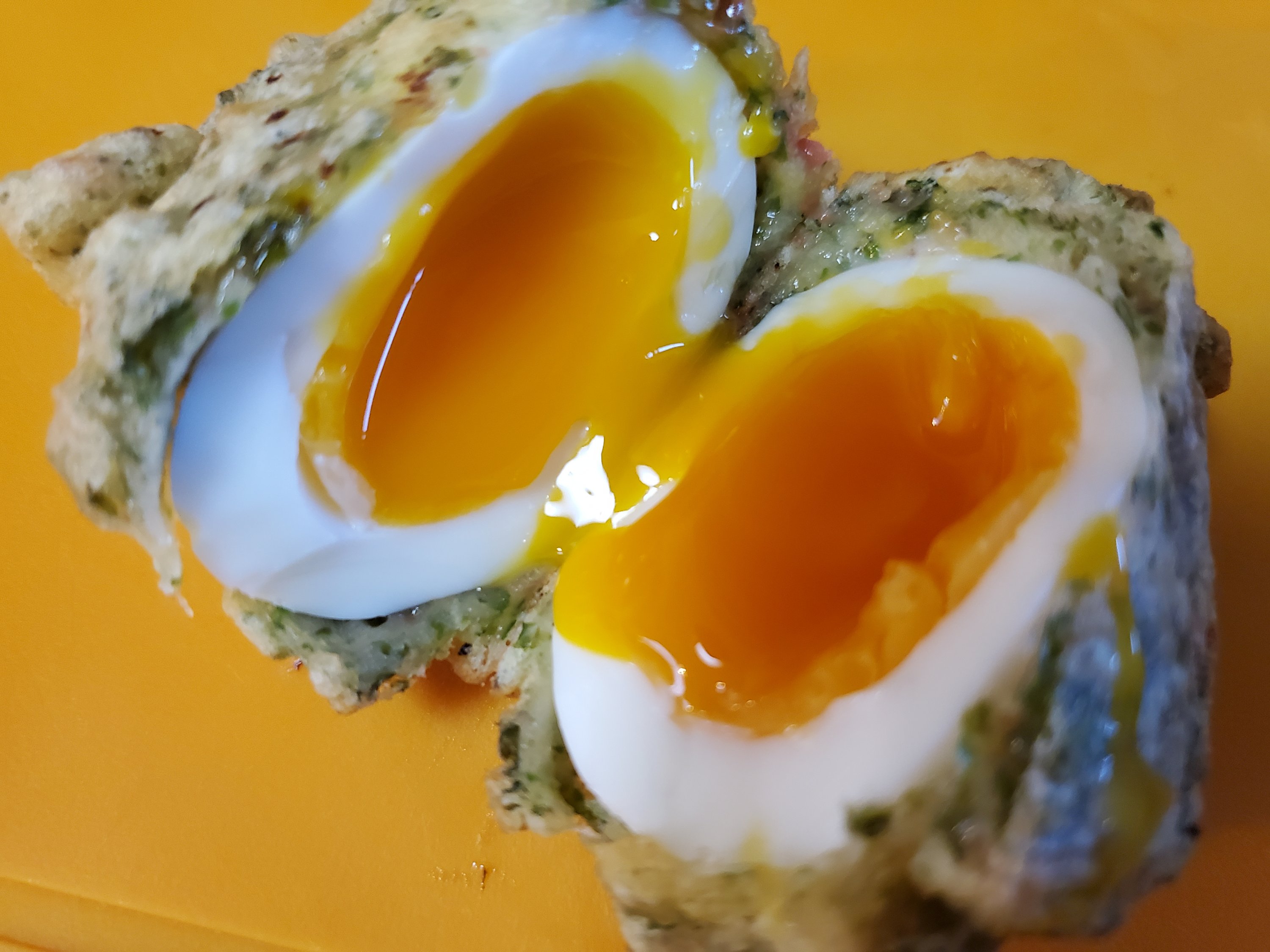衣の外側がかりっと仕上がり、中の黄身はとろりとした半熟をキープ。とてもうまくいきました🙌