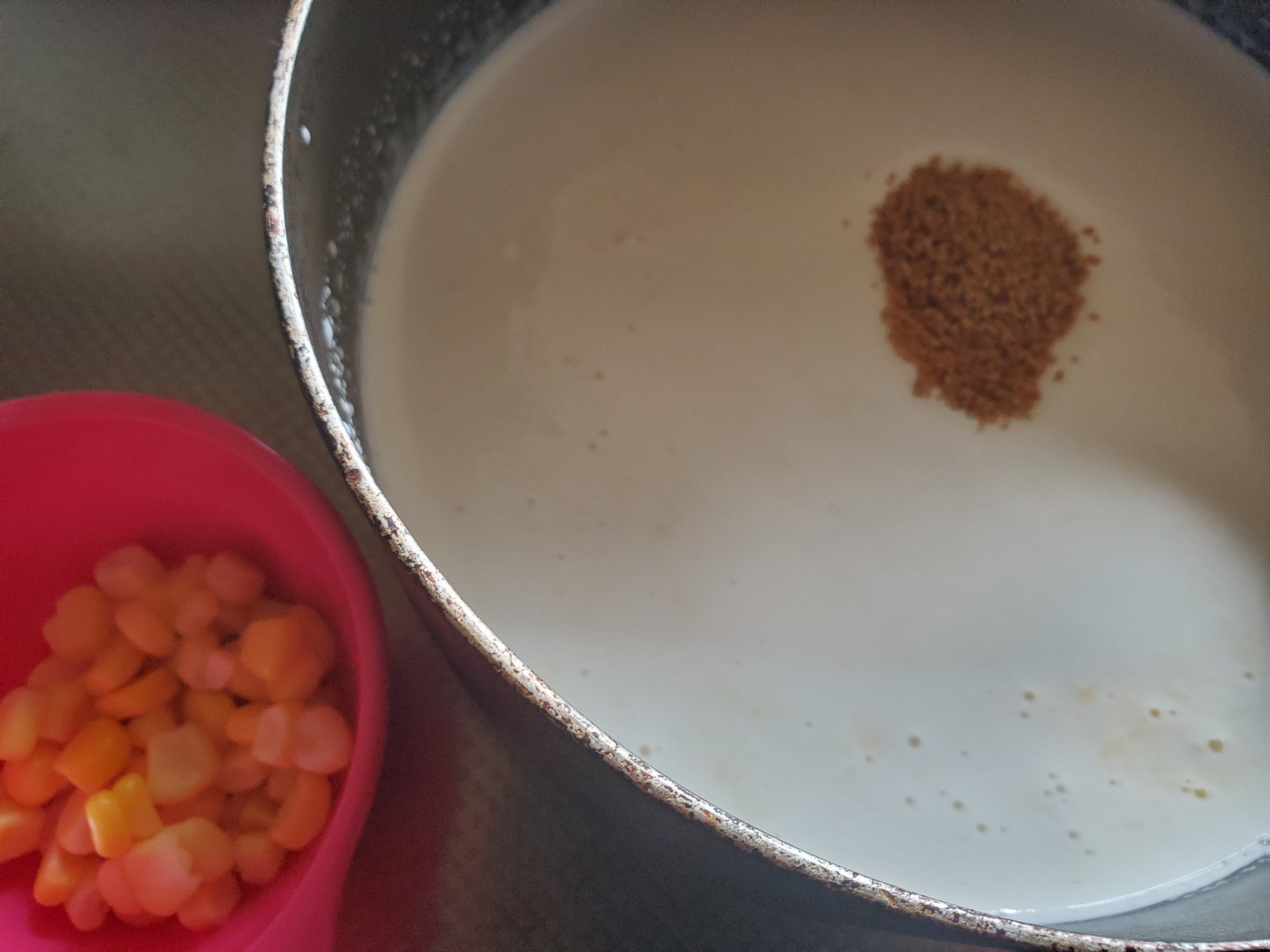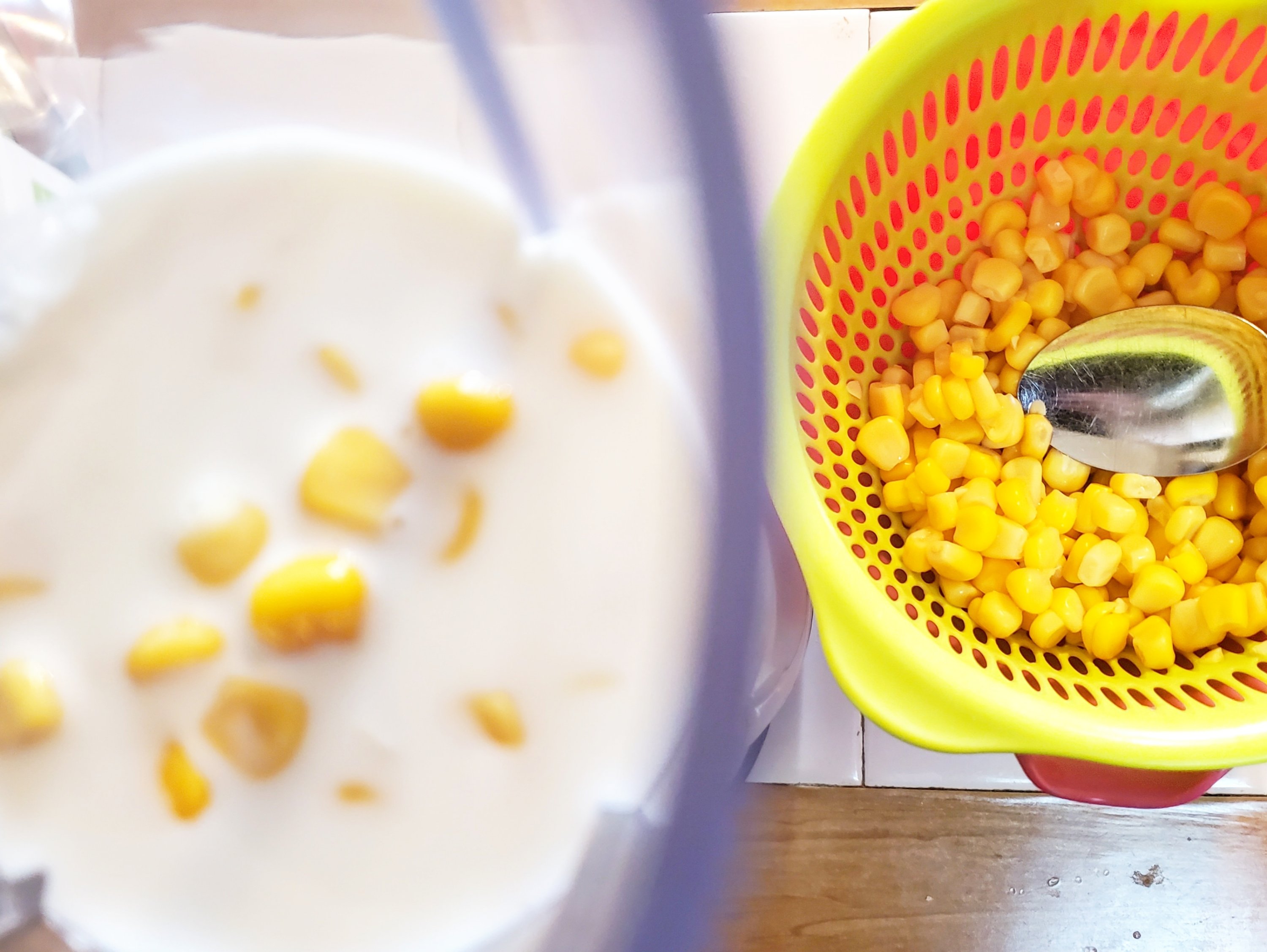 今回は缶詰のコーンを使って、コンポタづくりです。