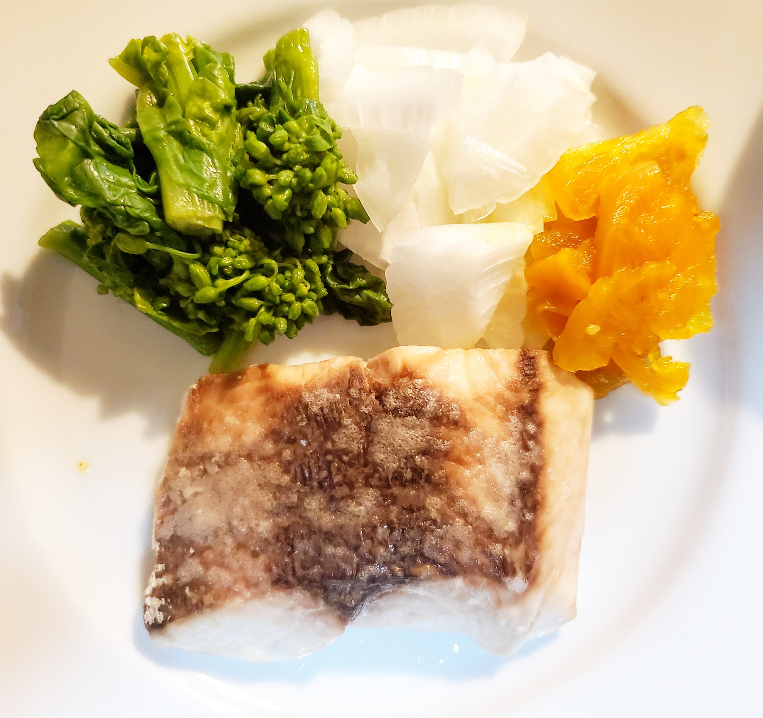 シンプルな白身魚の塩焼き、ちょっと醤油を垂らしても美味しいです😋