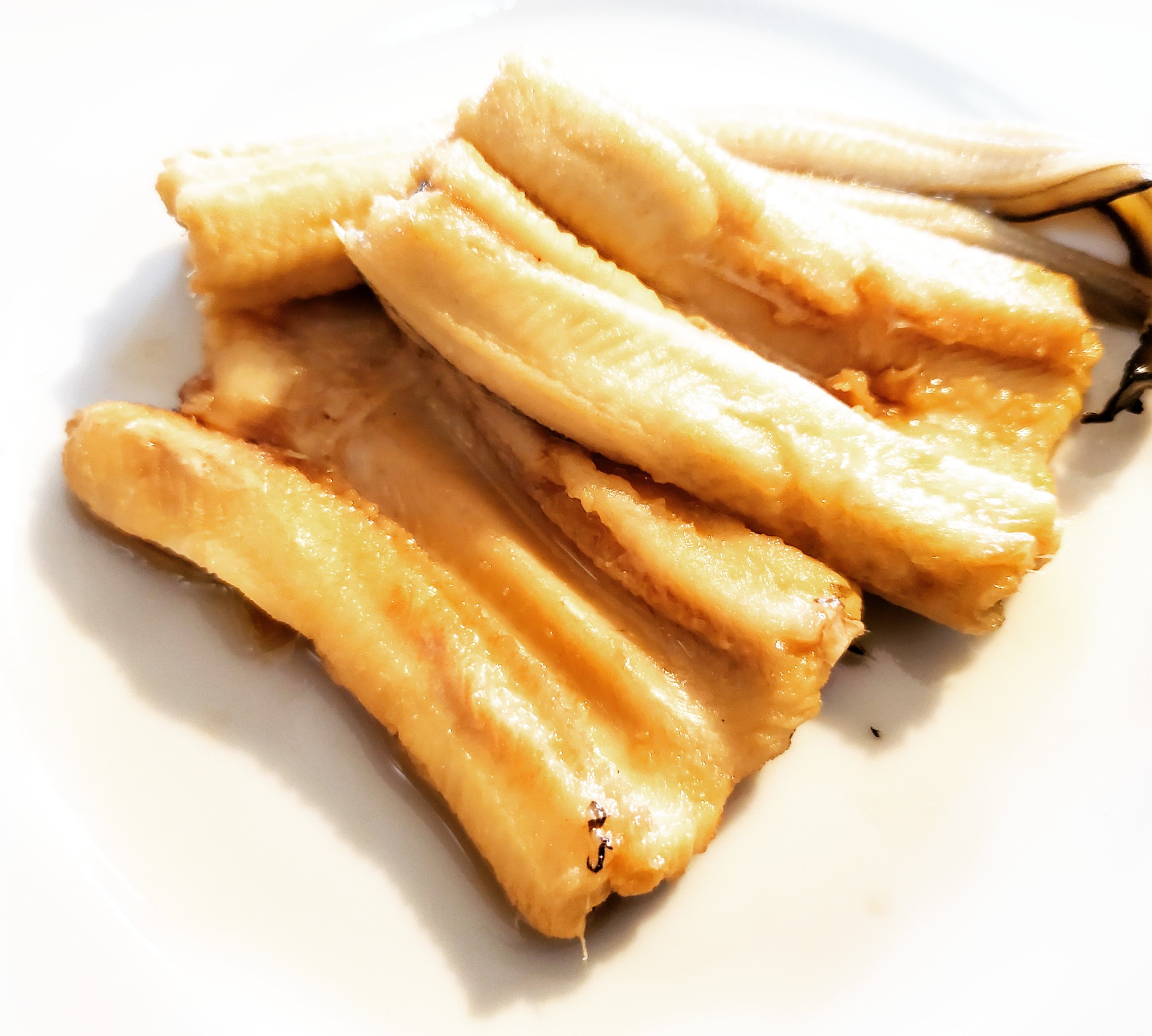 参加中の「タカラレシピコンテスト2021」のモニタープレゼントでいただいた、タカラ本みりん「国産米100%」とタカラ「料理のための清酒」を使って煮穴子にしてみます。