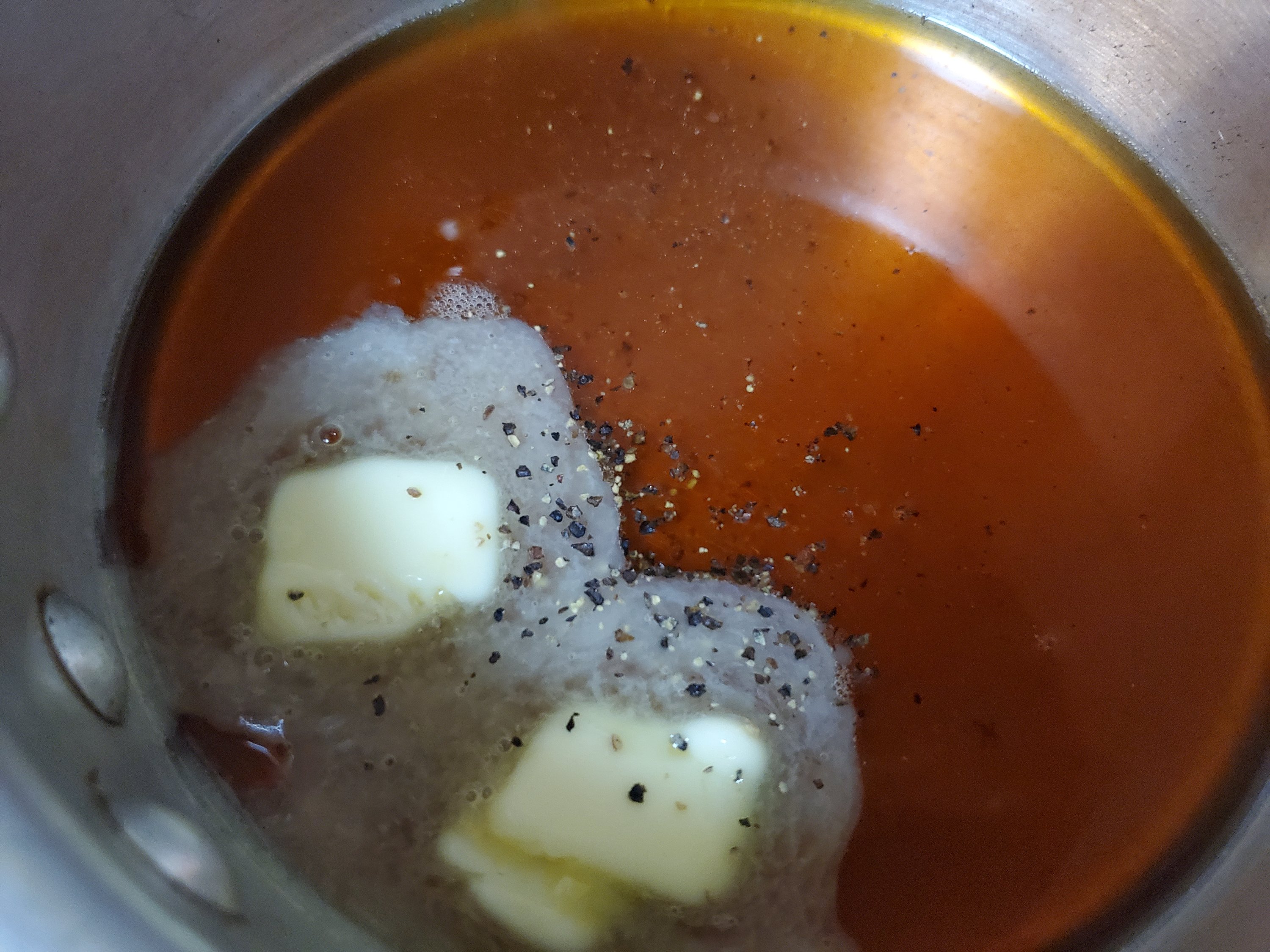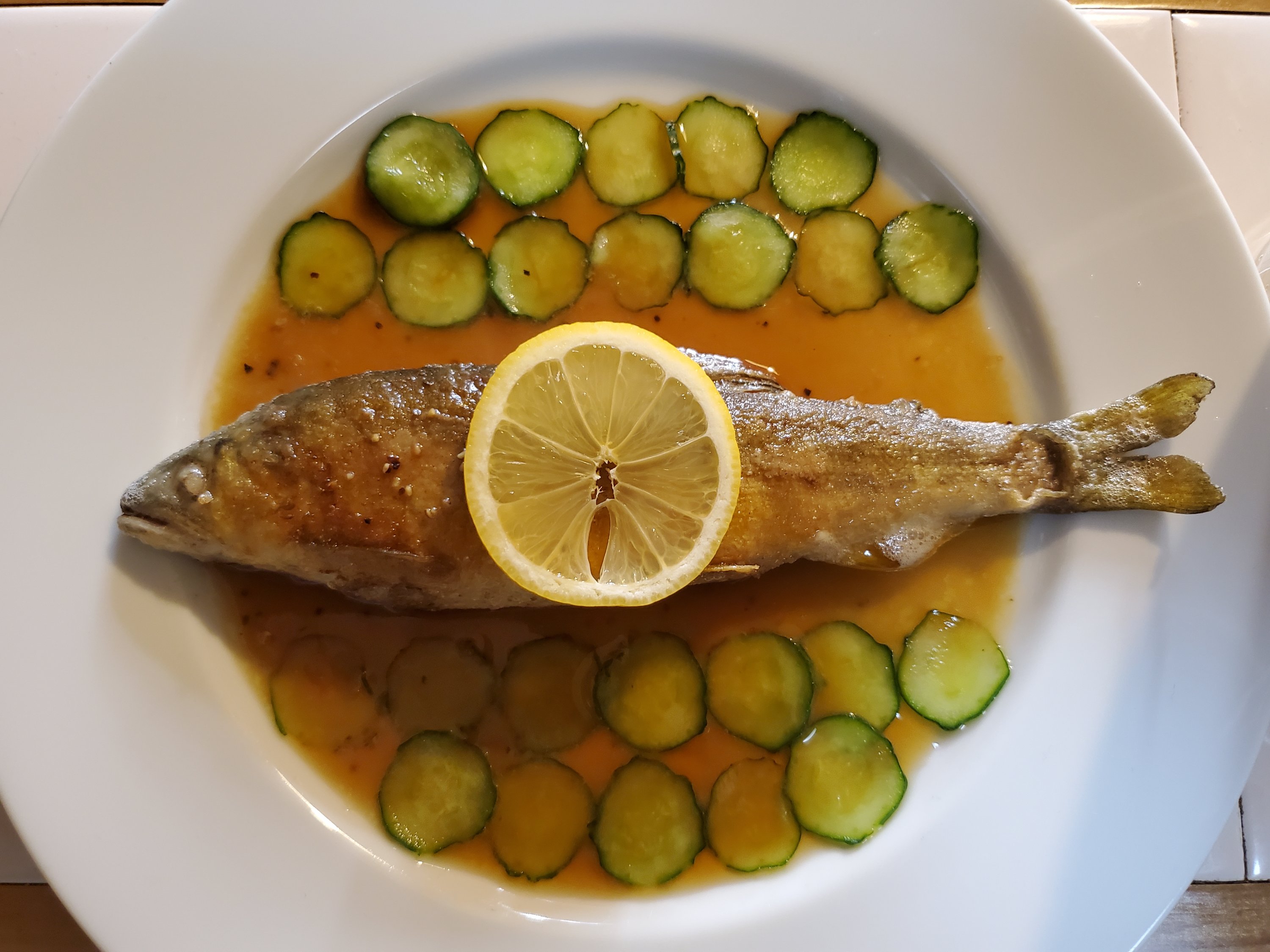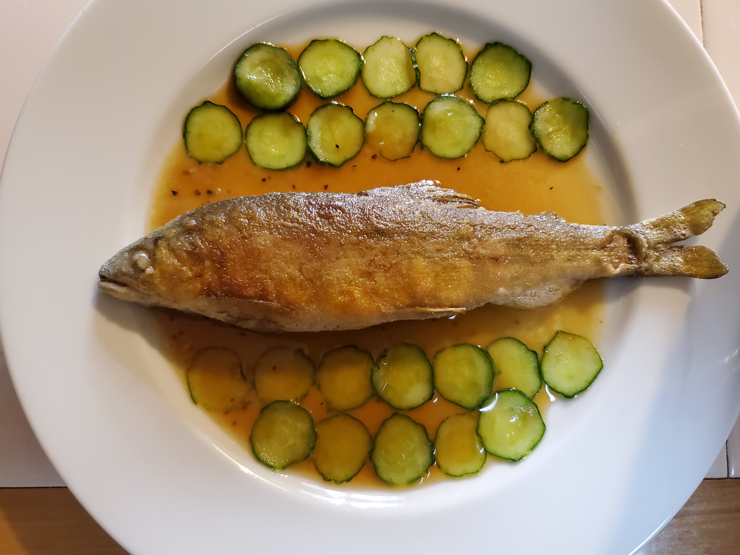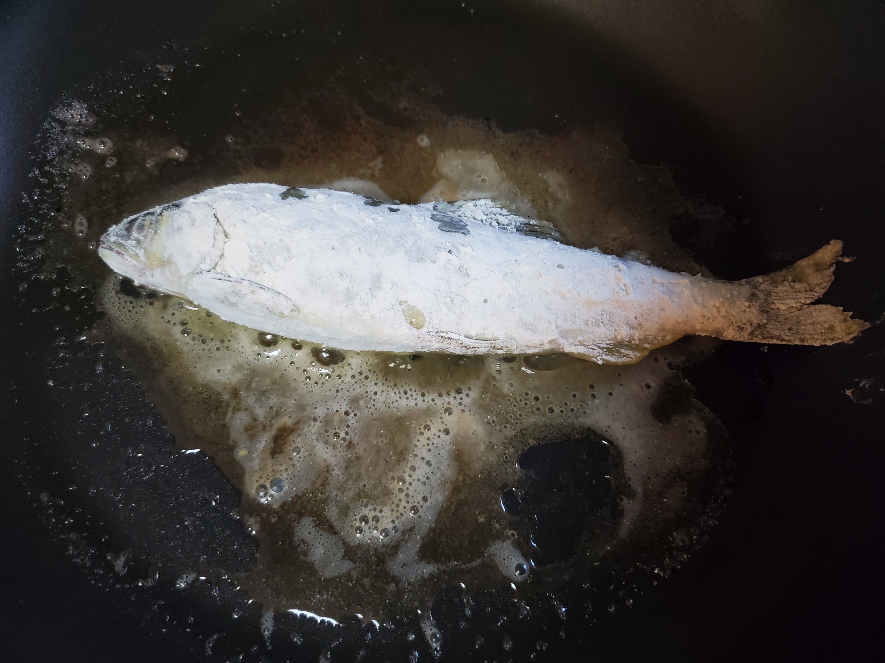 和のソースにバターとこしょうを利かせて、鮎のほろ苦いワタもおいしいムニエルの出来上がりです🙌