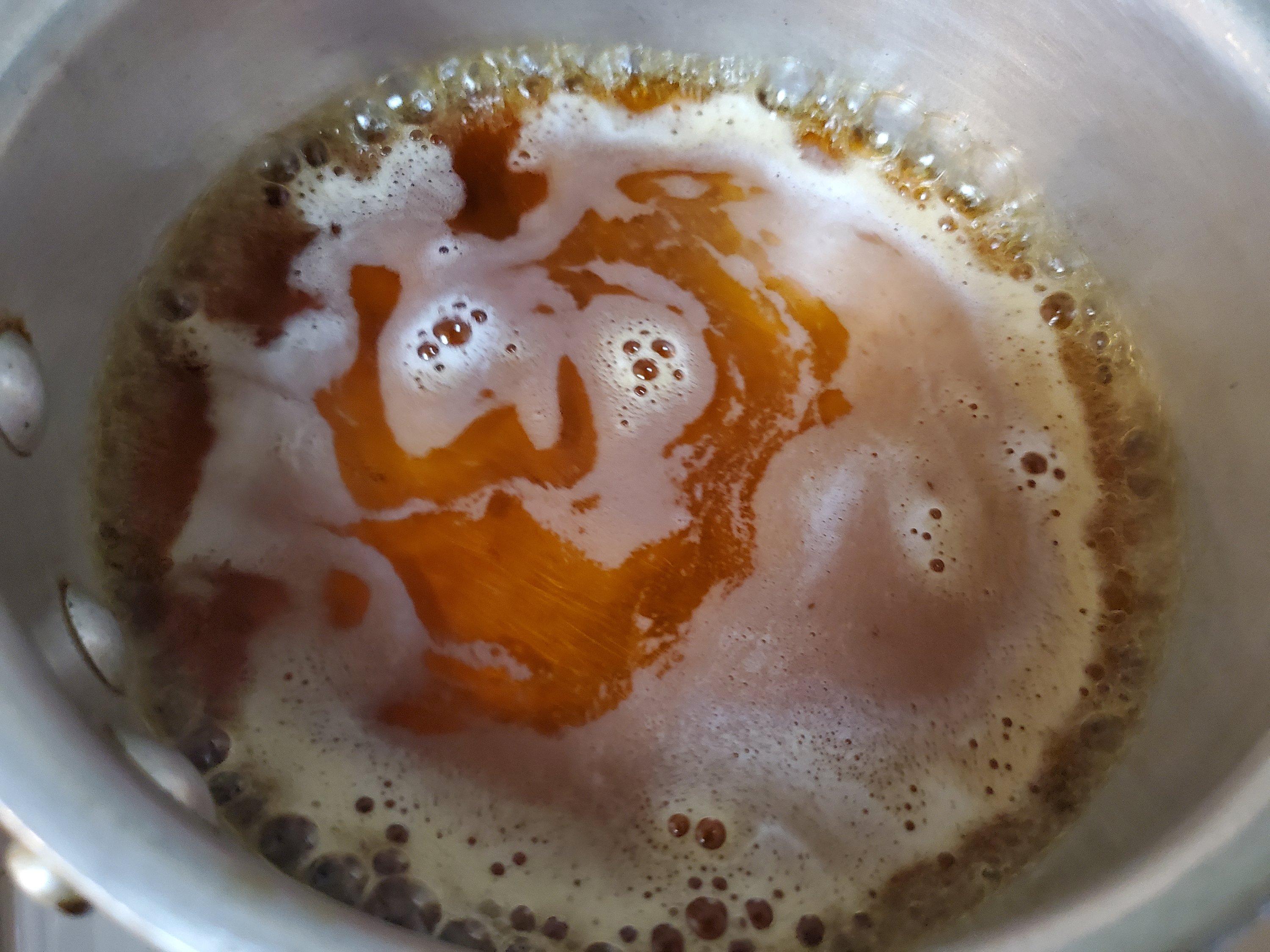 温度が上がって火がつきますが、アルコール分が蒸発したら自然に消えるので、あわてず落ち着いて煮切ってください。