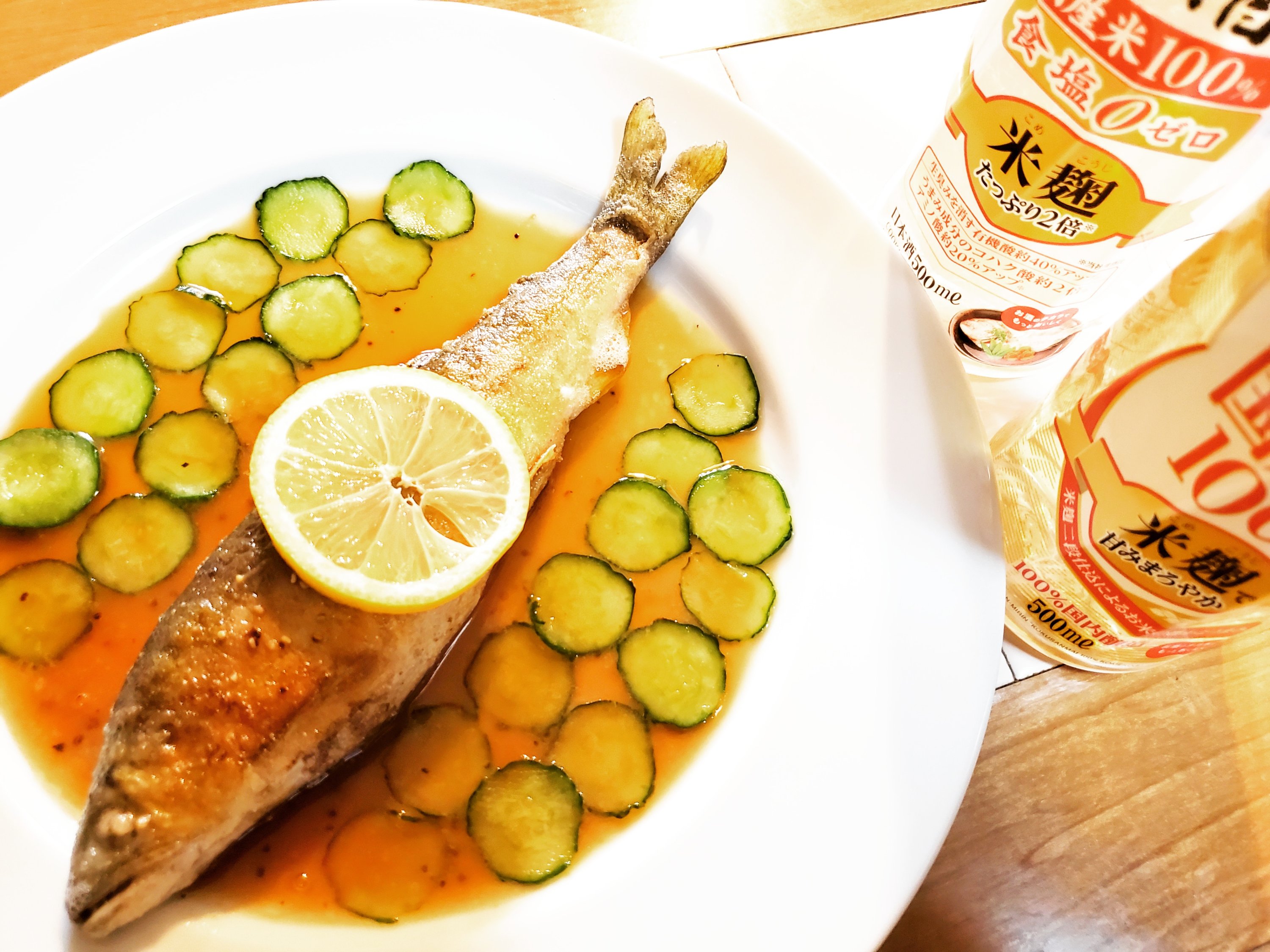 今回は湖国生まれの自分にとってはこの季節の懐かしい食材、鮎をメインに、モニタープレゼントでいただいたタカラ本みりん「国産米100%」とタカラ「料理のための清酒」のソースを添えた、ニッポンの洋食の一皿を作ってみます。