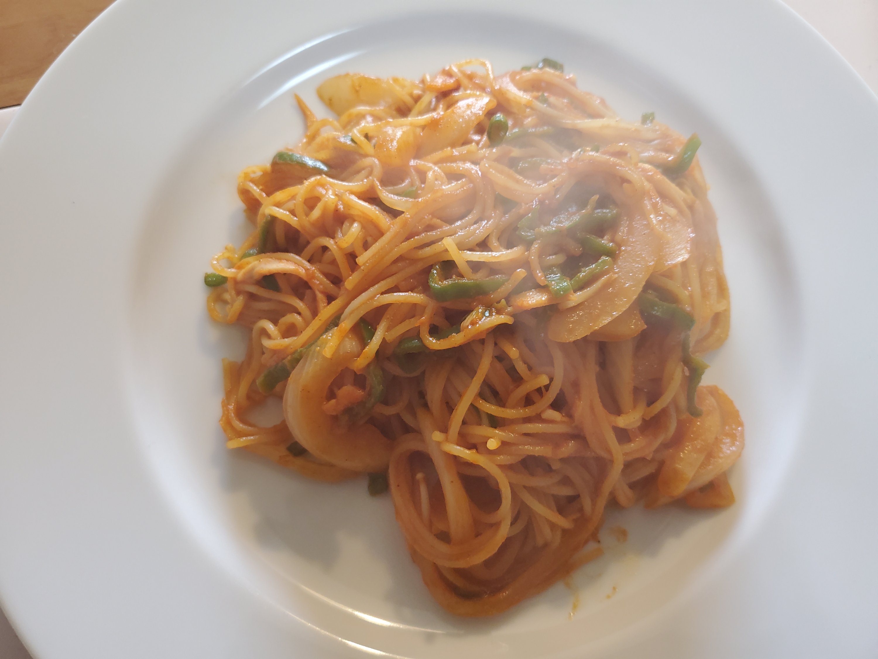 カレー風味なので福神漬けを添えたらバッチリでした。