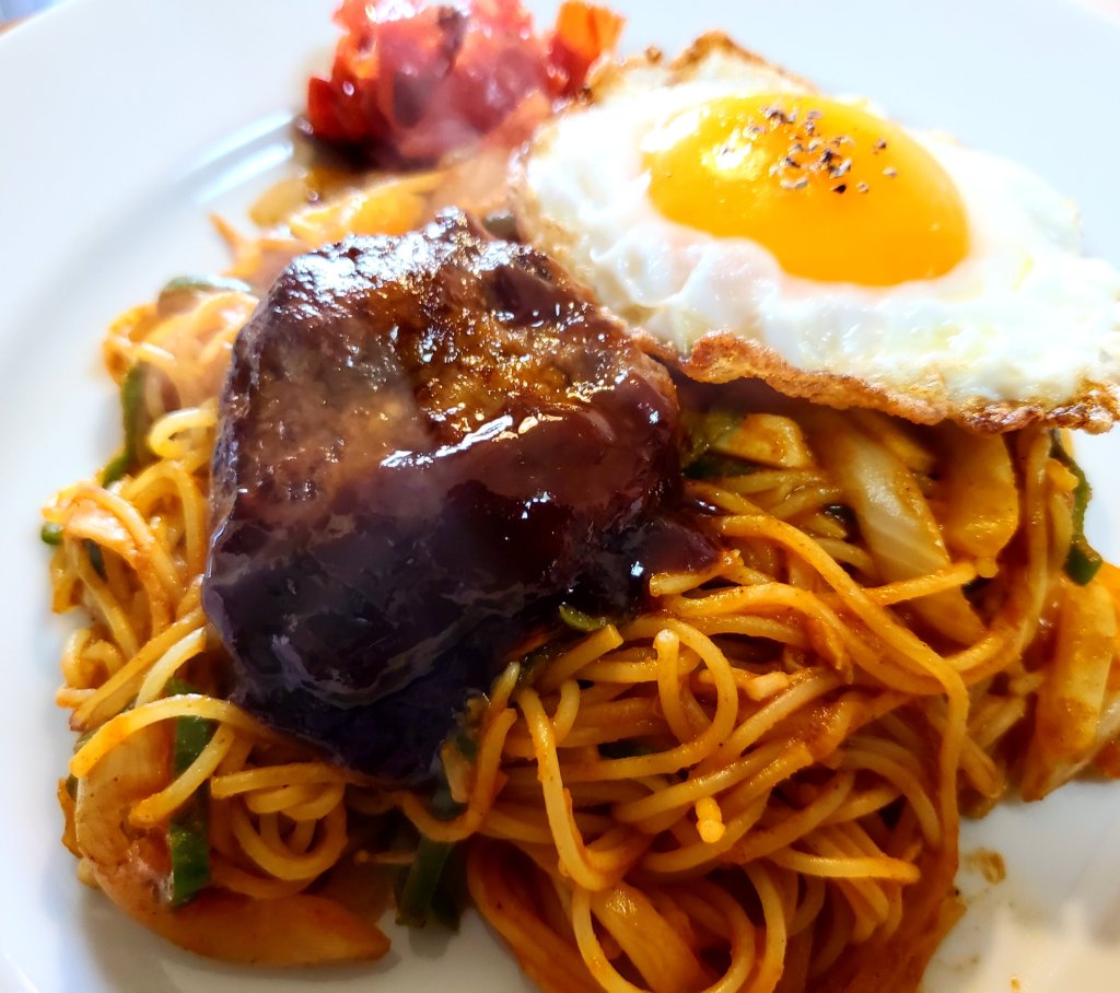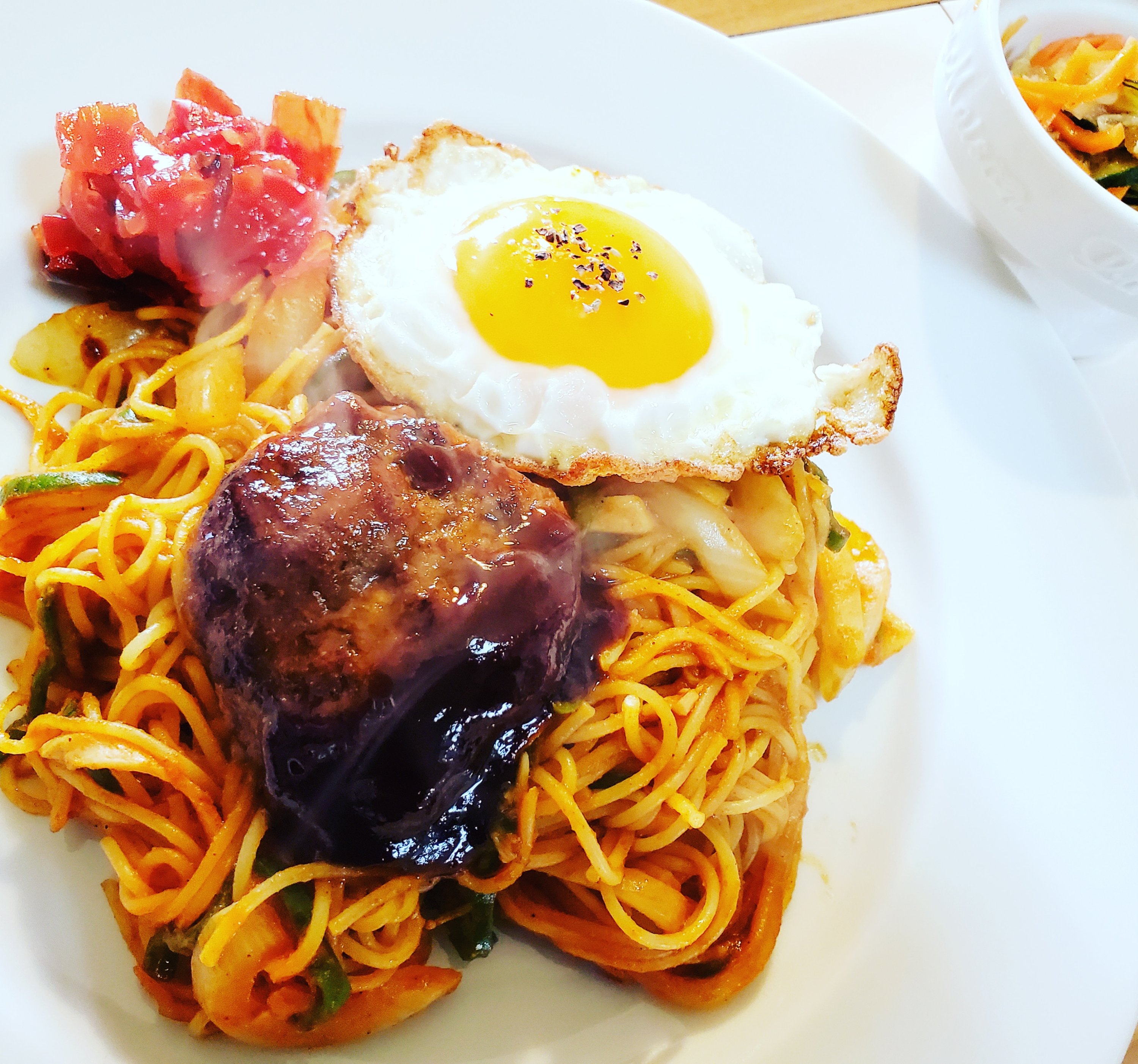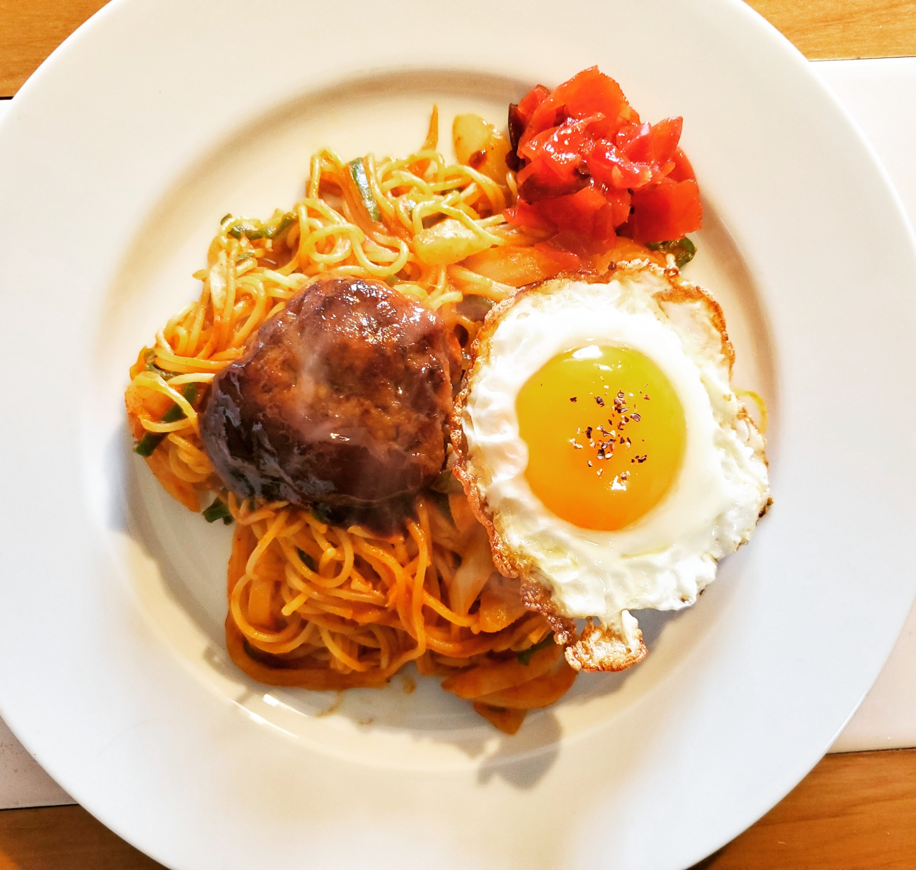 トッピングにハンバーグと目玉焼きでボリュームたっぷり。