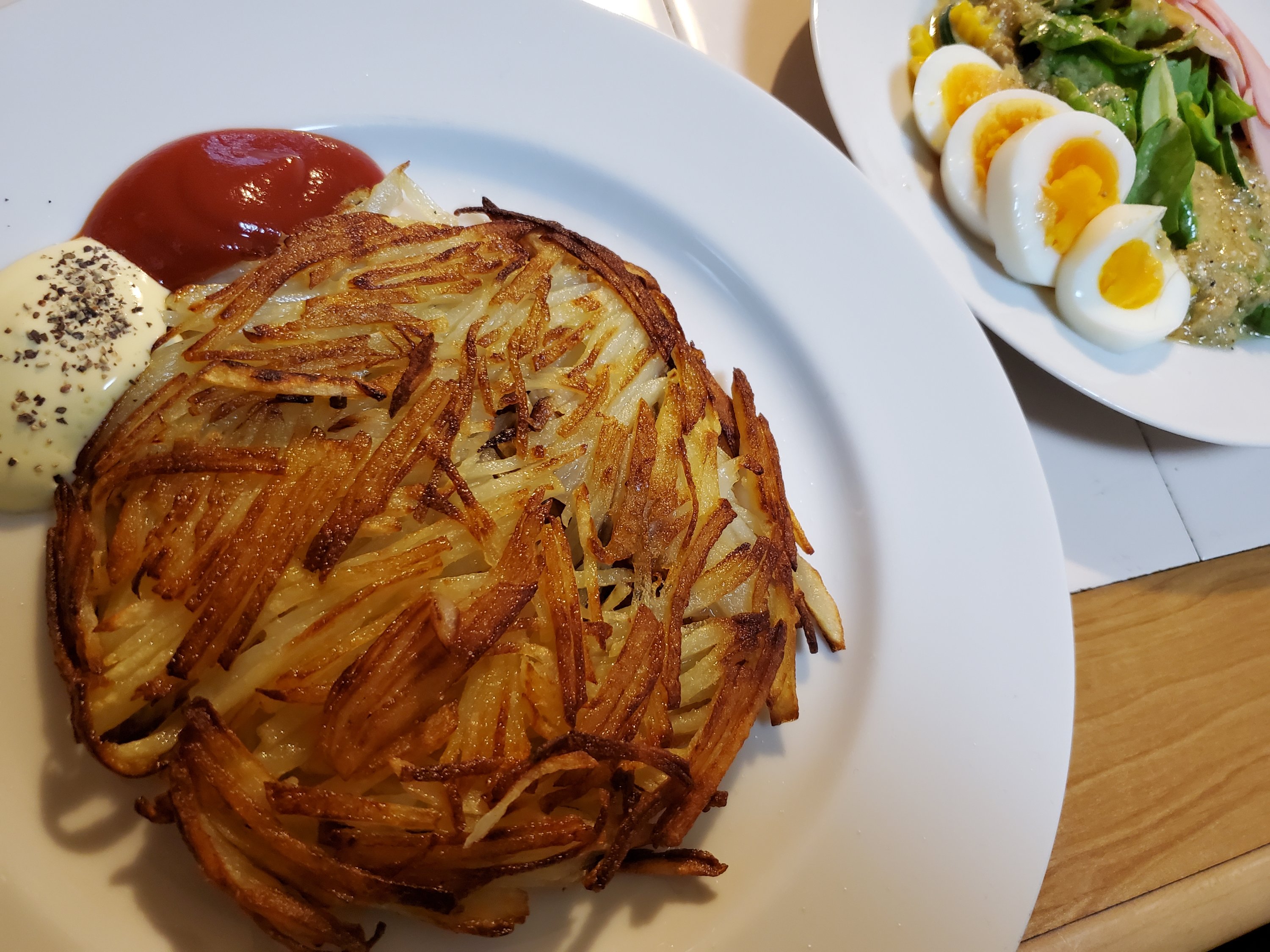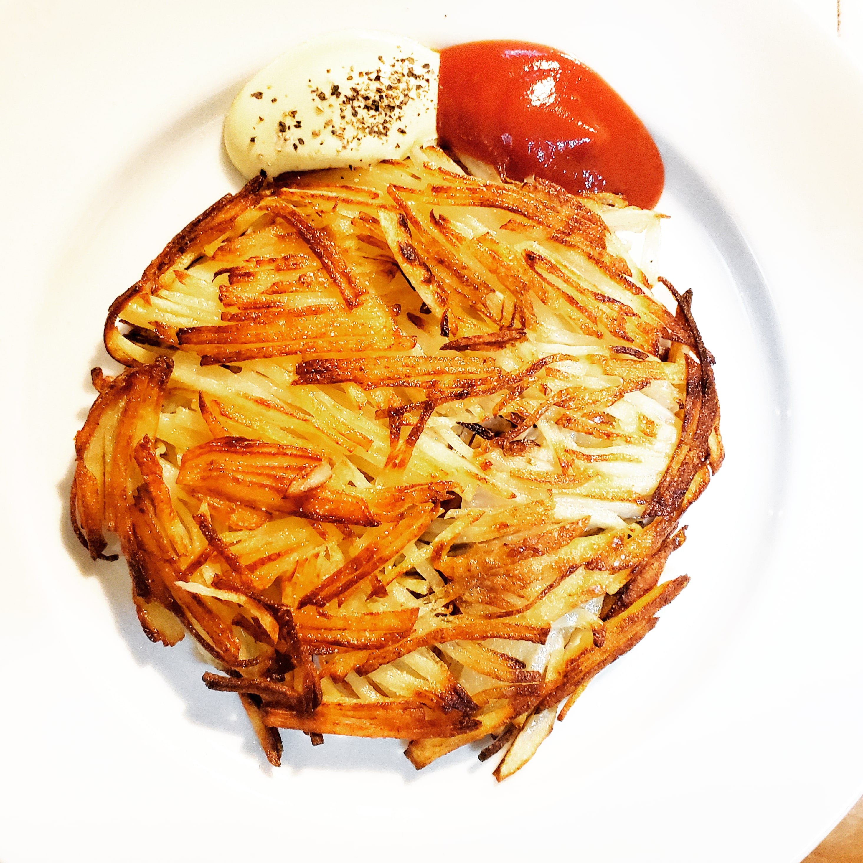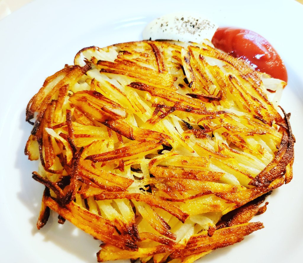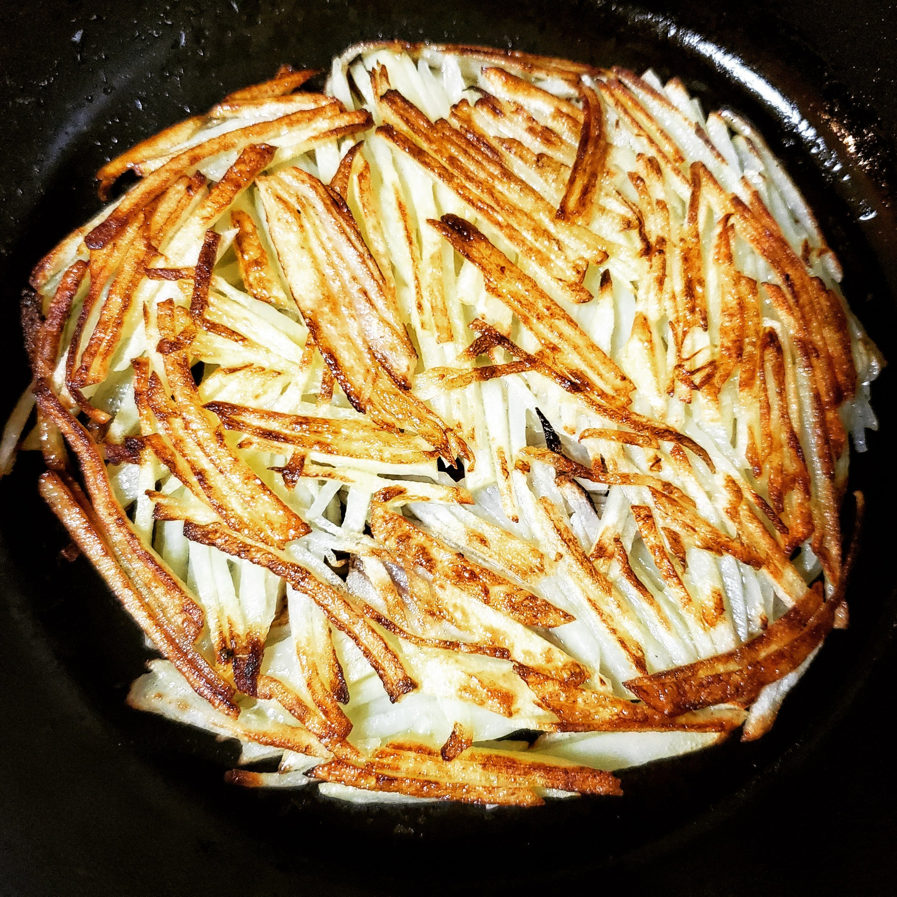 なので、でんぷんが流れてしまわないように、千切りしたじゃがいもは水にさらさないようにします。