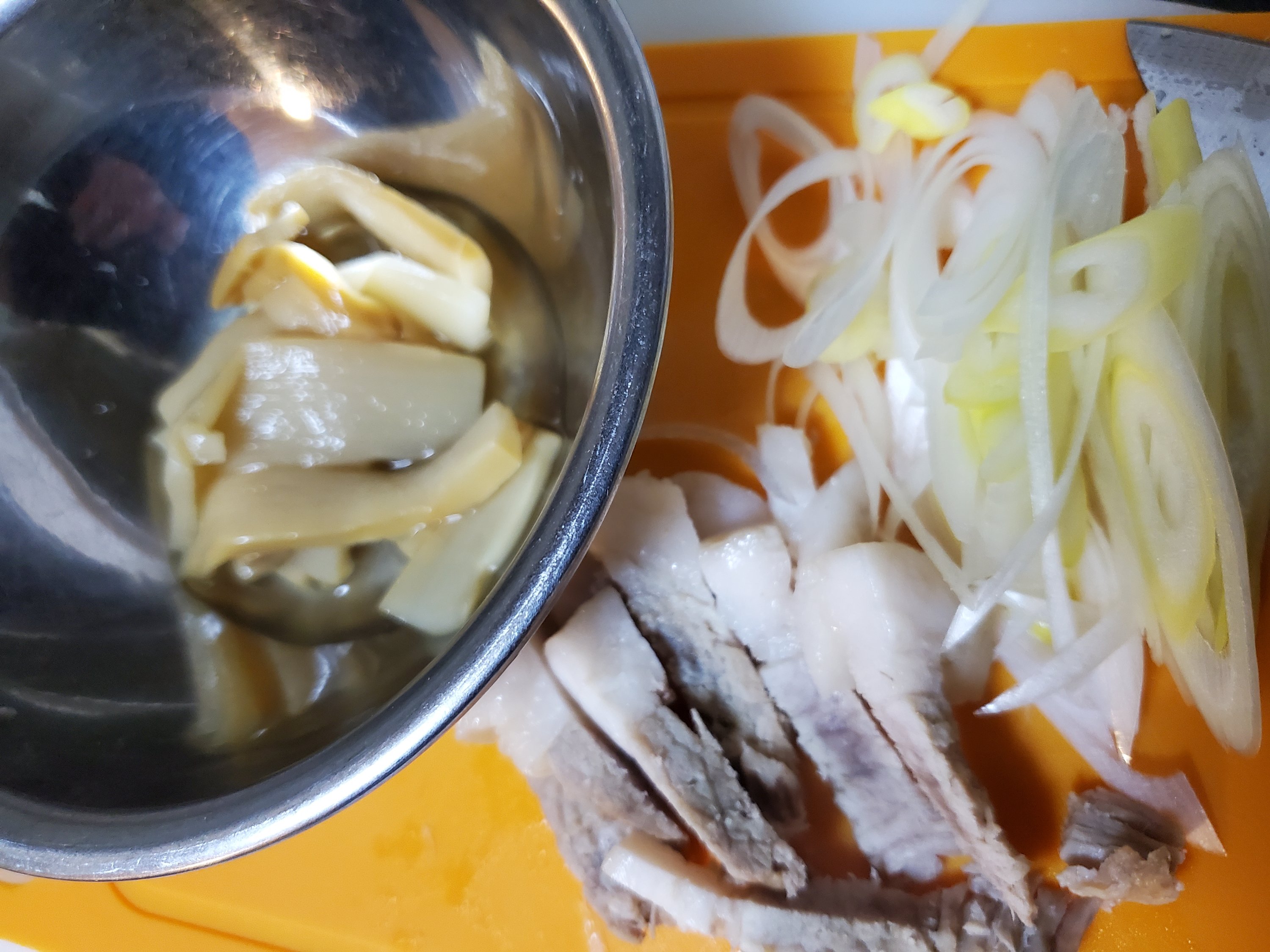 我が家ではチャーシューは休日に塊肉で作って、それをスライスしたものを冷凍してあります。