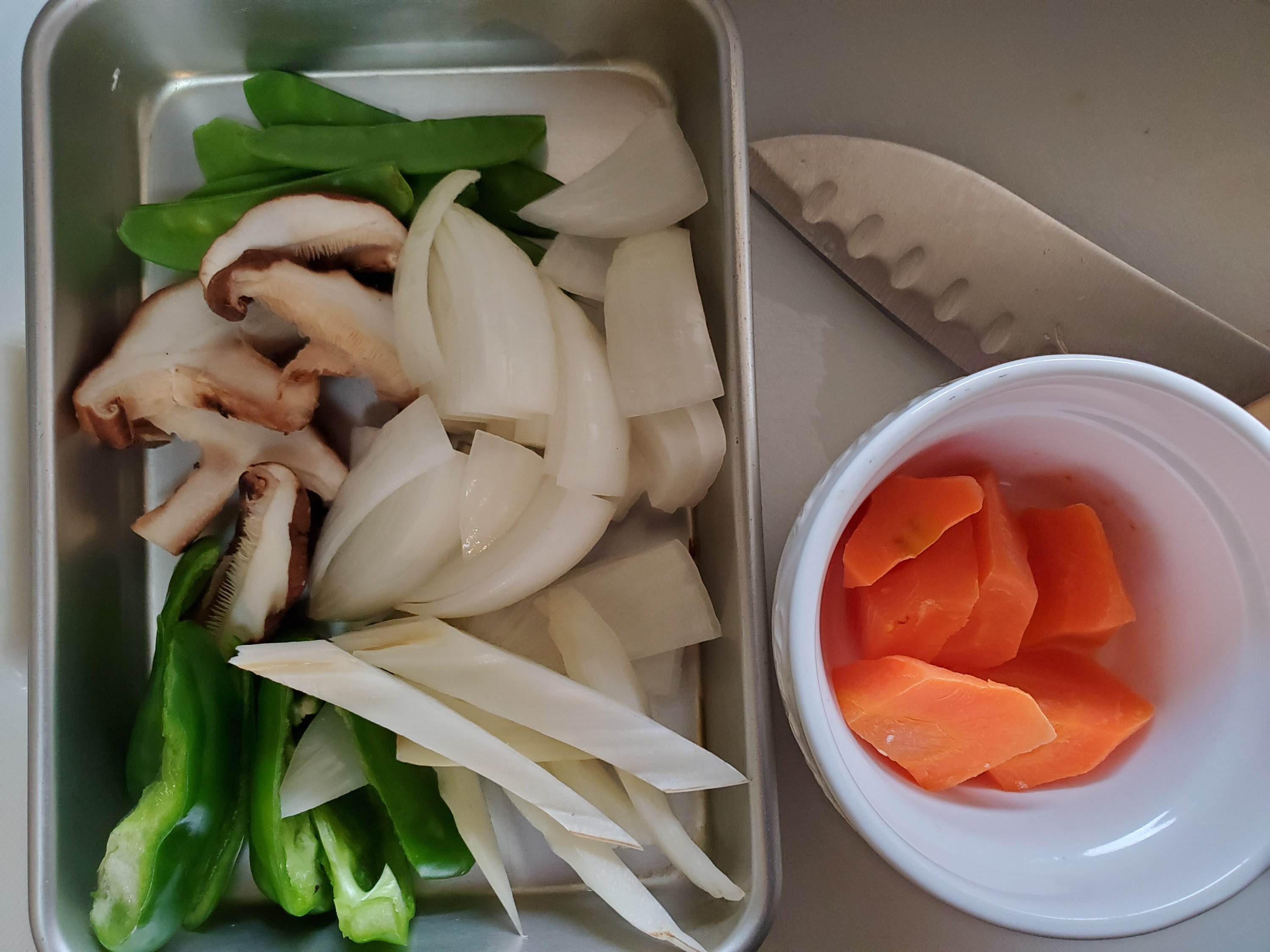 にんじんは乱切りにして電子レンジで2分ほど加熱しておきます。