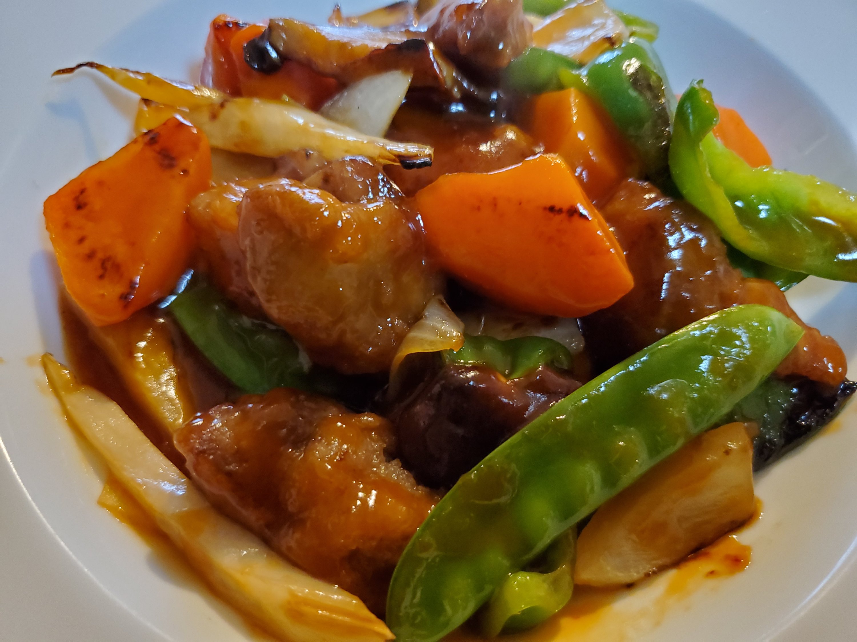 本格的な中華料理屋さんに行くと、近ごろは黒酢を使った酢豚が多い気がしますが、昔ながらのケチャップを使った赤い甘酢餡の酢豚が好みです💛