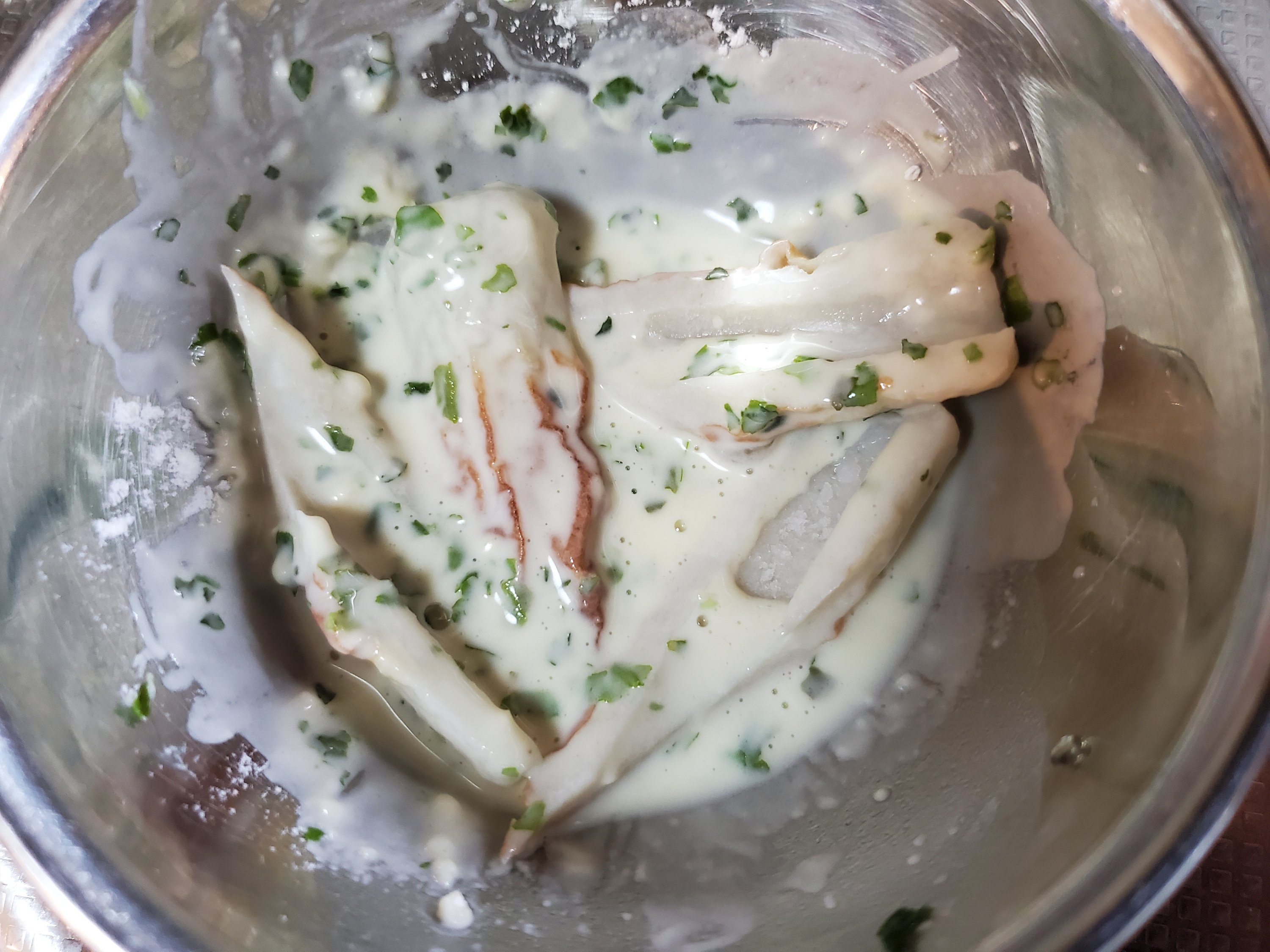 フライのソースはタルタルソースもいいけれど、今回は冷めてから食べるので、冷めても美味しいソースにします。