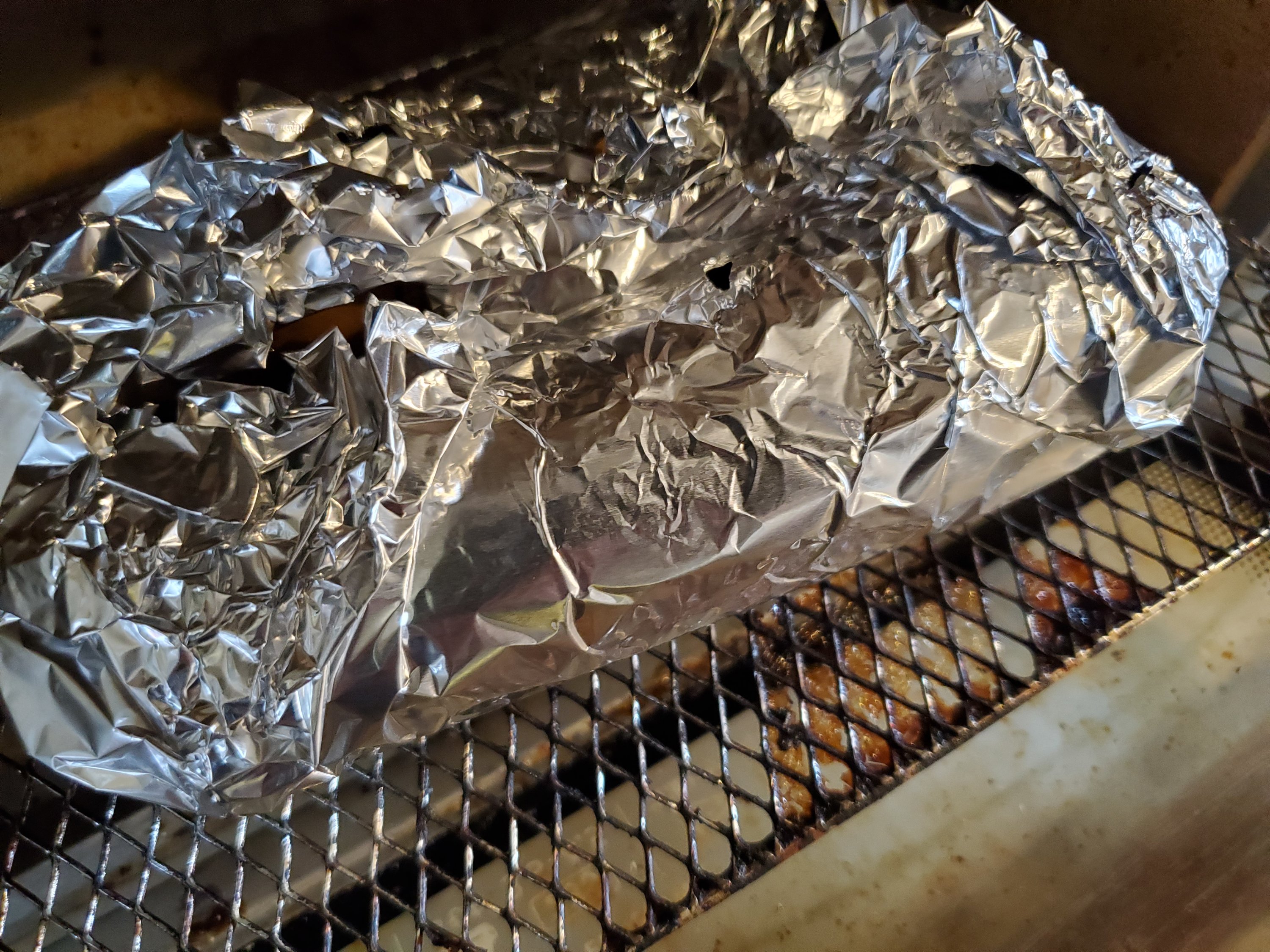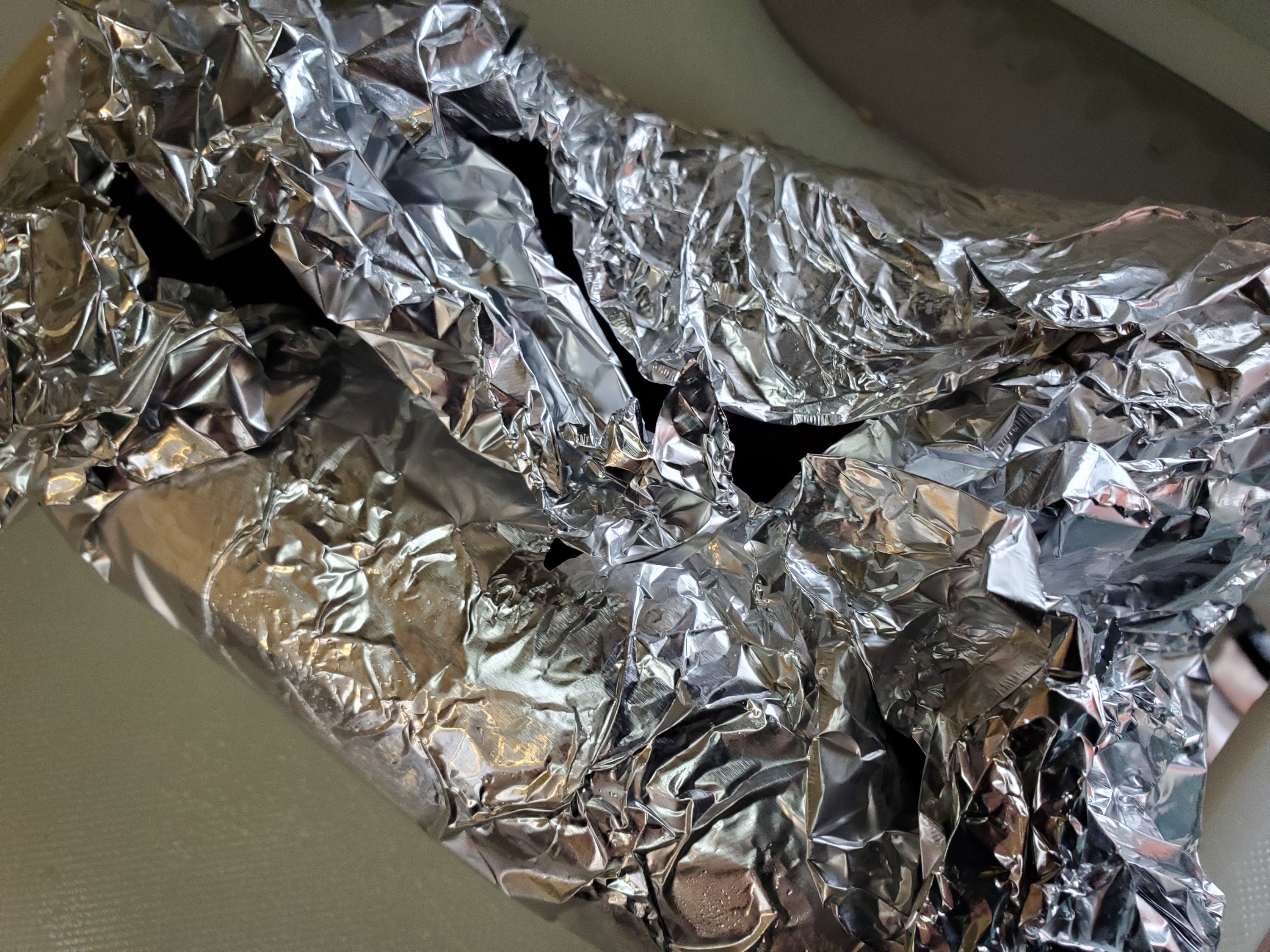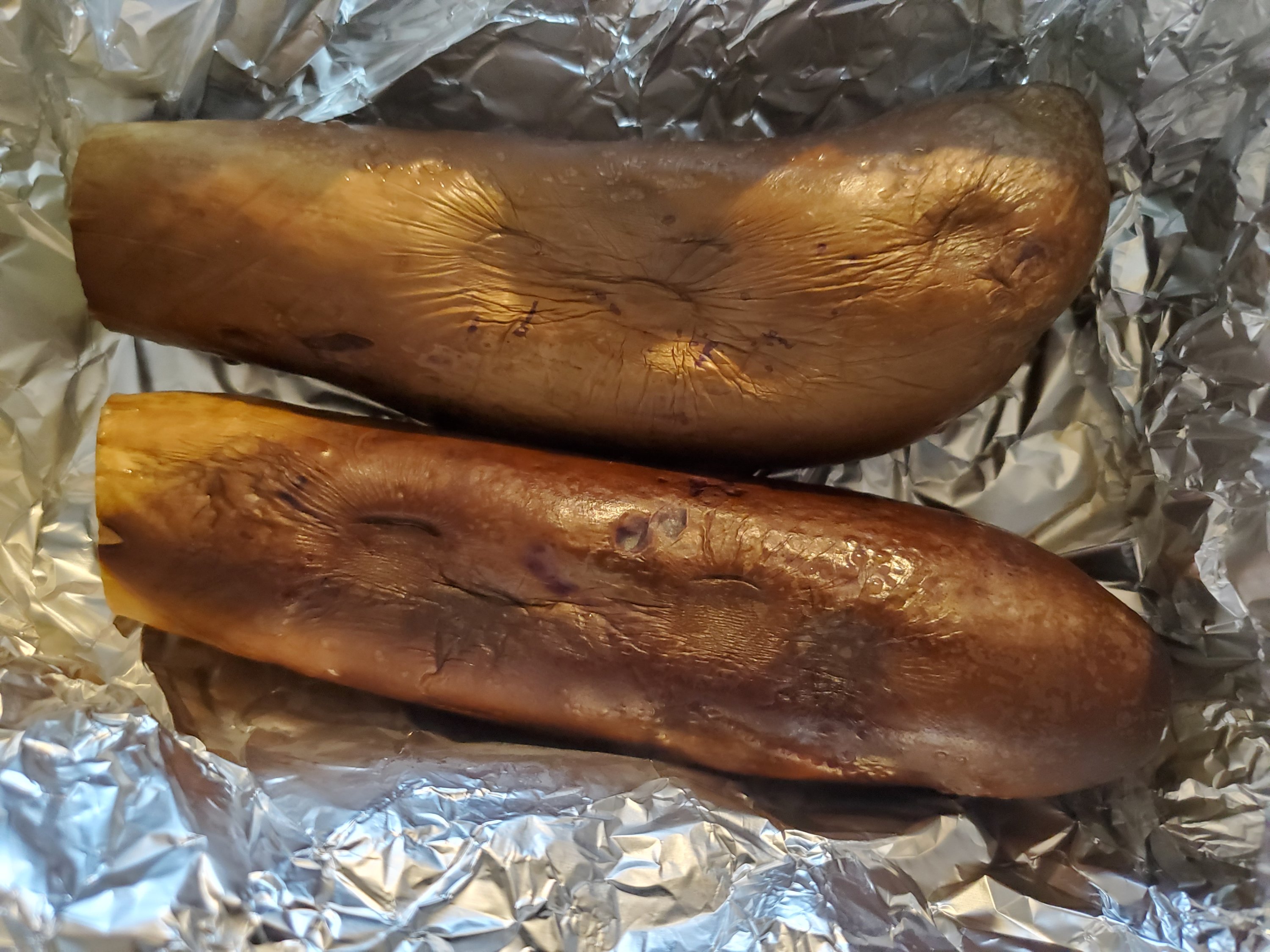 アルミホイルの上から押してみて、中まで柔らかくなっていれば焼き上がりです。
