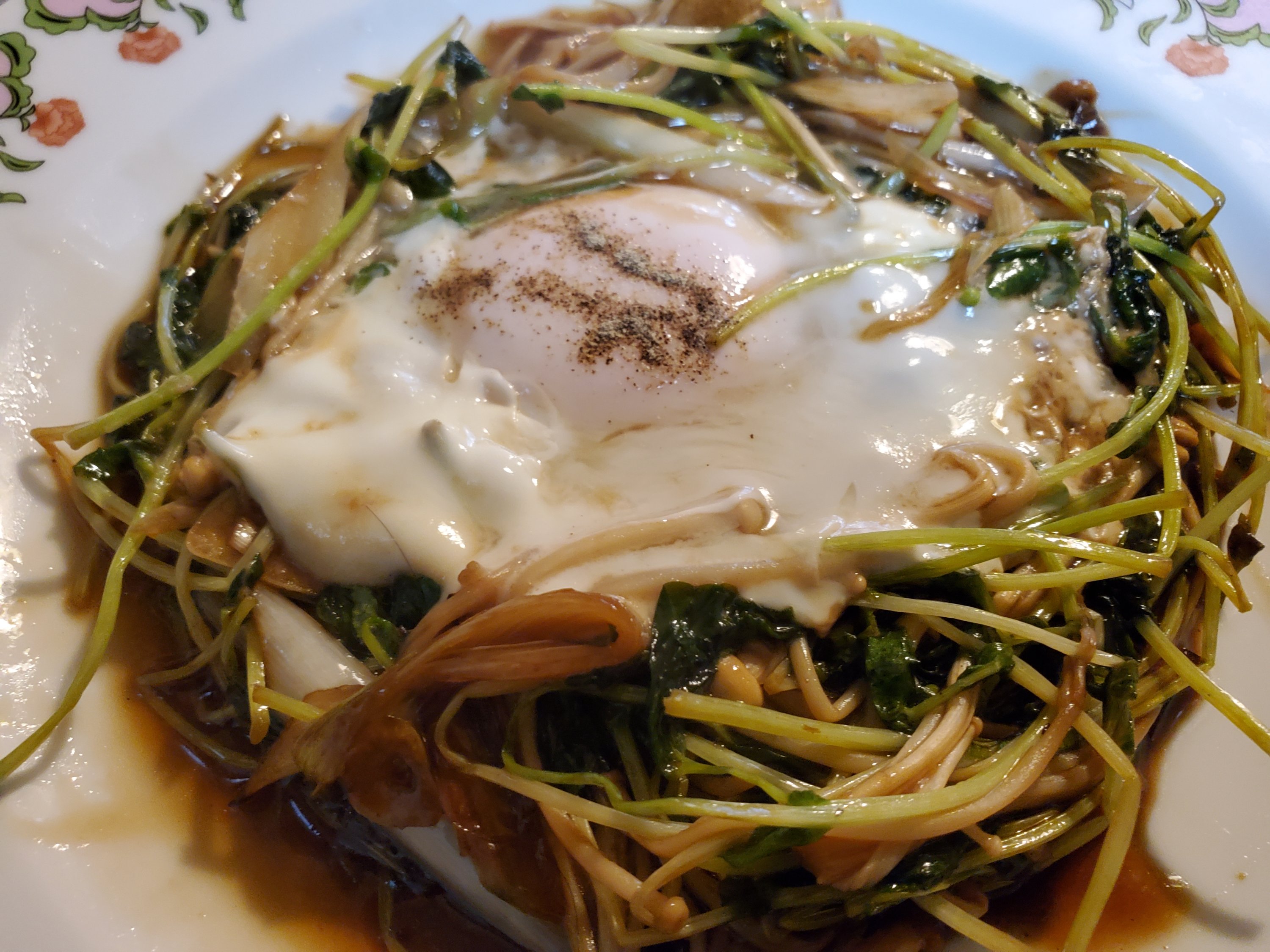 焼きそばをアレンジして、豆苗とえのきを使ったので、糖質オフにもお役立ちかも😋