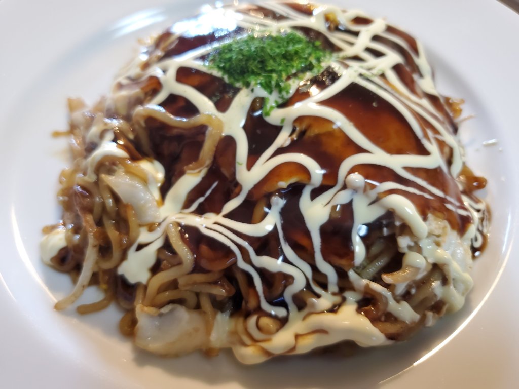層になったお好み焼きの中にはやわらかく蒸されたほかほかのキャベツともやしに、そばが隠れてて満足度十分です😋