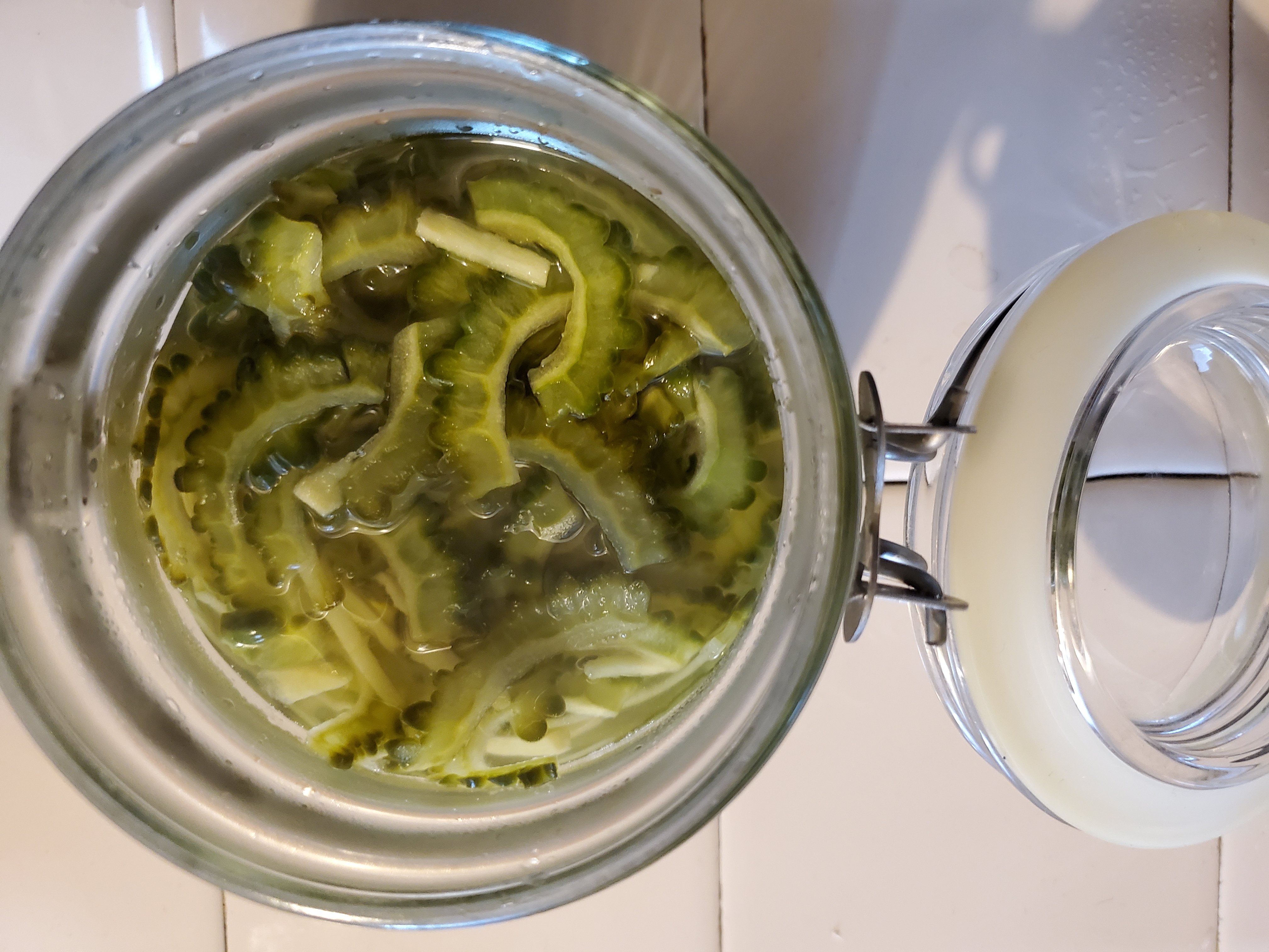 パリパリした食感と、甘酸っぱい漬け汁の味がしみこんだゴーヤは爽やかにいただける夏の味😋