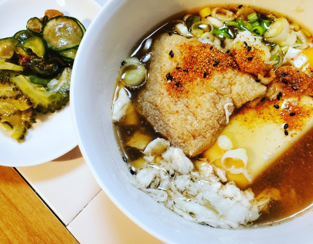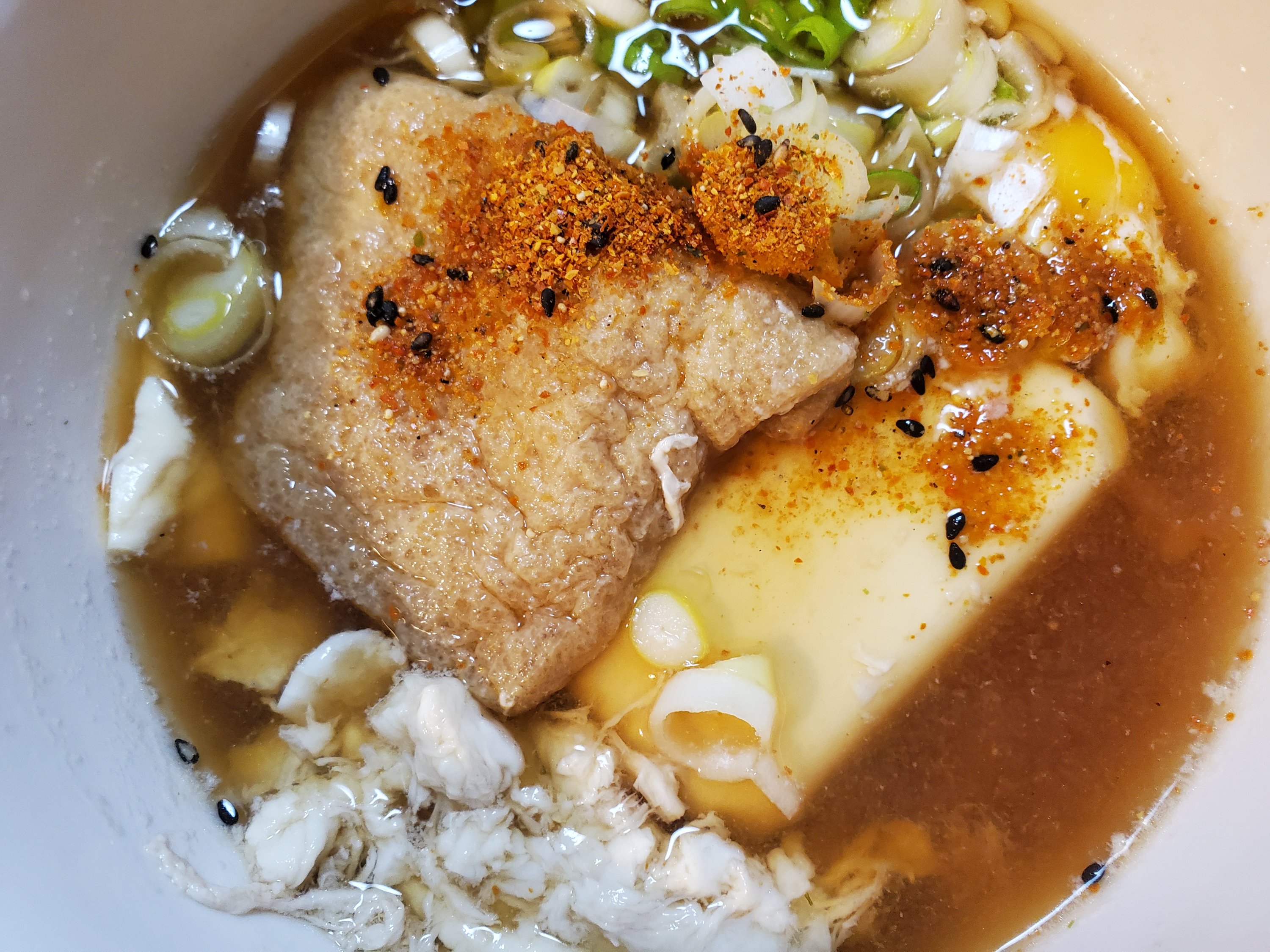 肉うどんのうどんのかわりに、豆腐を使ったレシピですが、うどんを豆腐に代えるとおつまみにもいいなぁと思います。